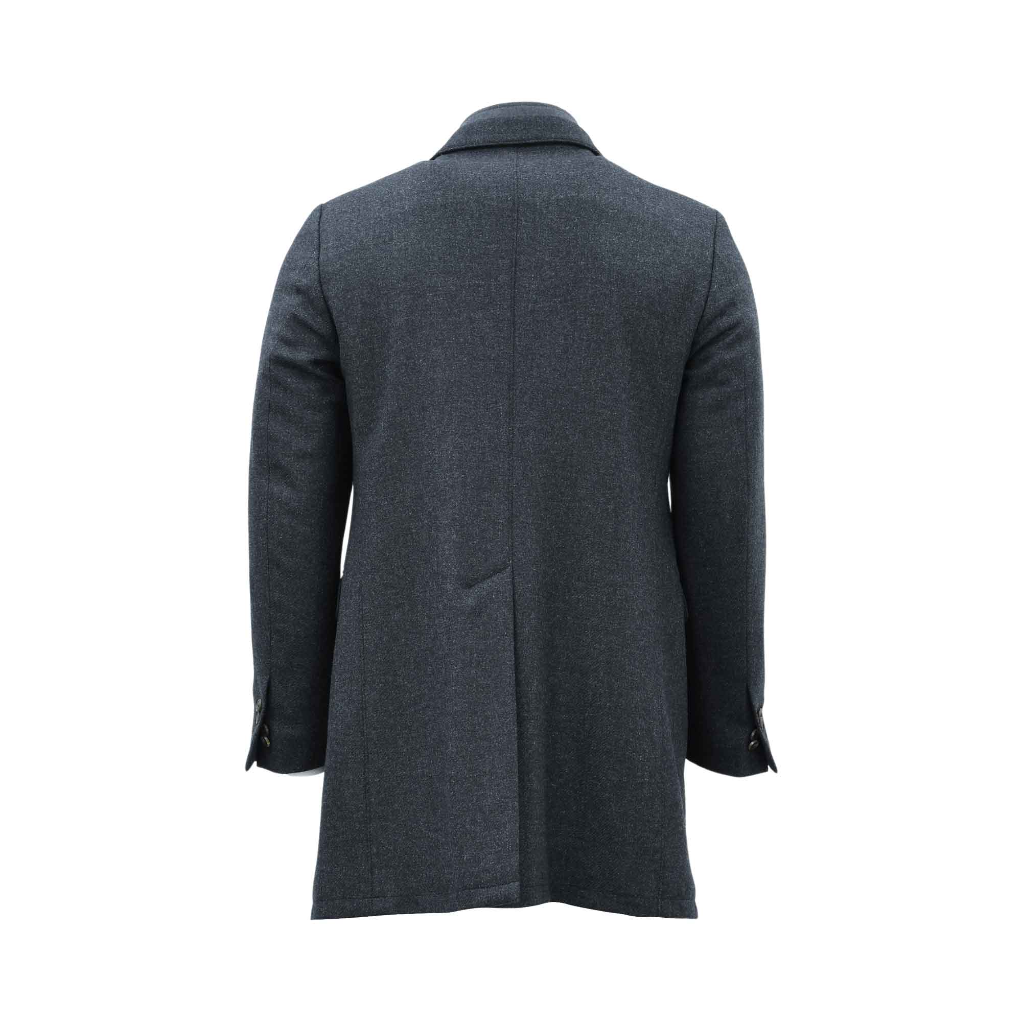 The Corneliani Men's Gray Melange Dark Coat is a sleek and sophisticated single-breasted blazer from the esteemed Italian brand. The coat features a stylish navy blue color and is crafted with a front zip fastening and a front button fastening for a secure fit. It also has notched lapels, two side flap pockets, and long sleeves for added style and functionality. The coat is fully lined for comfort and has a curved hem and rear slit for added flair. This coat is a must-have for any fashion-conscious man looking to elevate their outerwear collection. SPECIFICATIONS