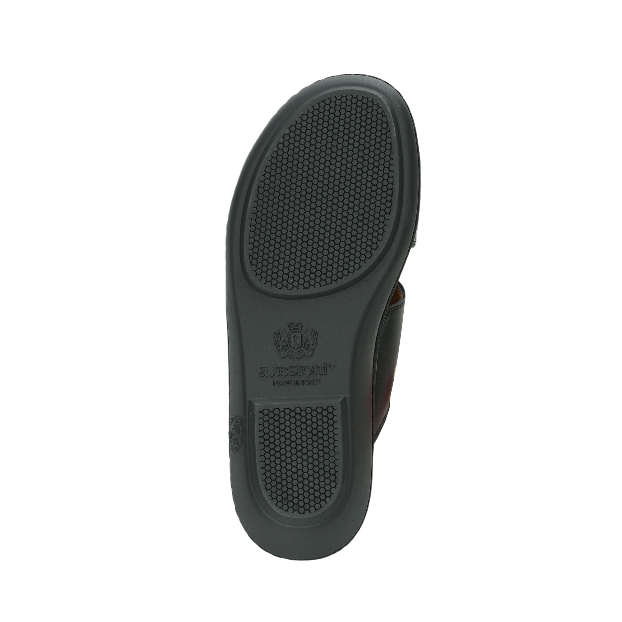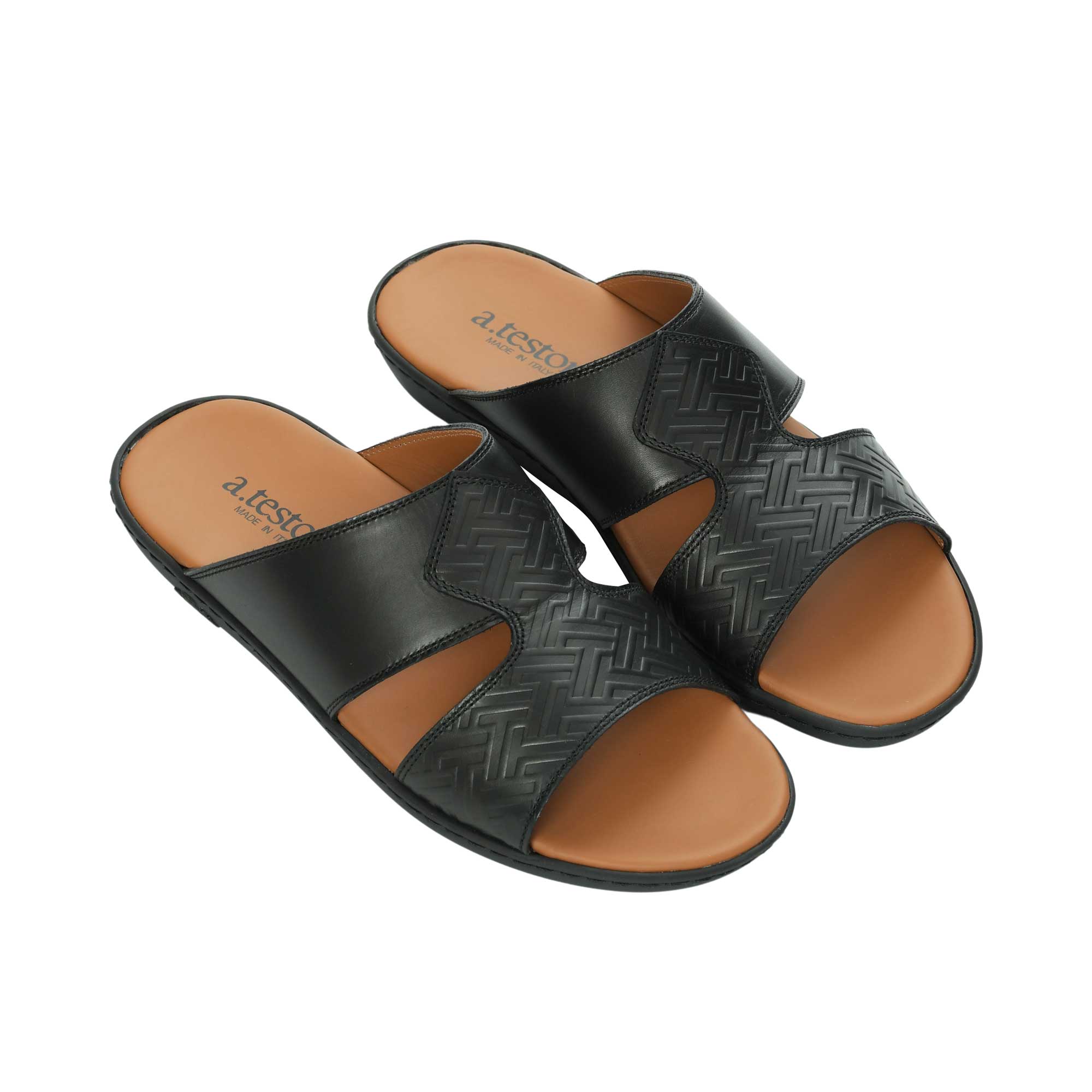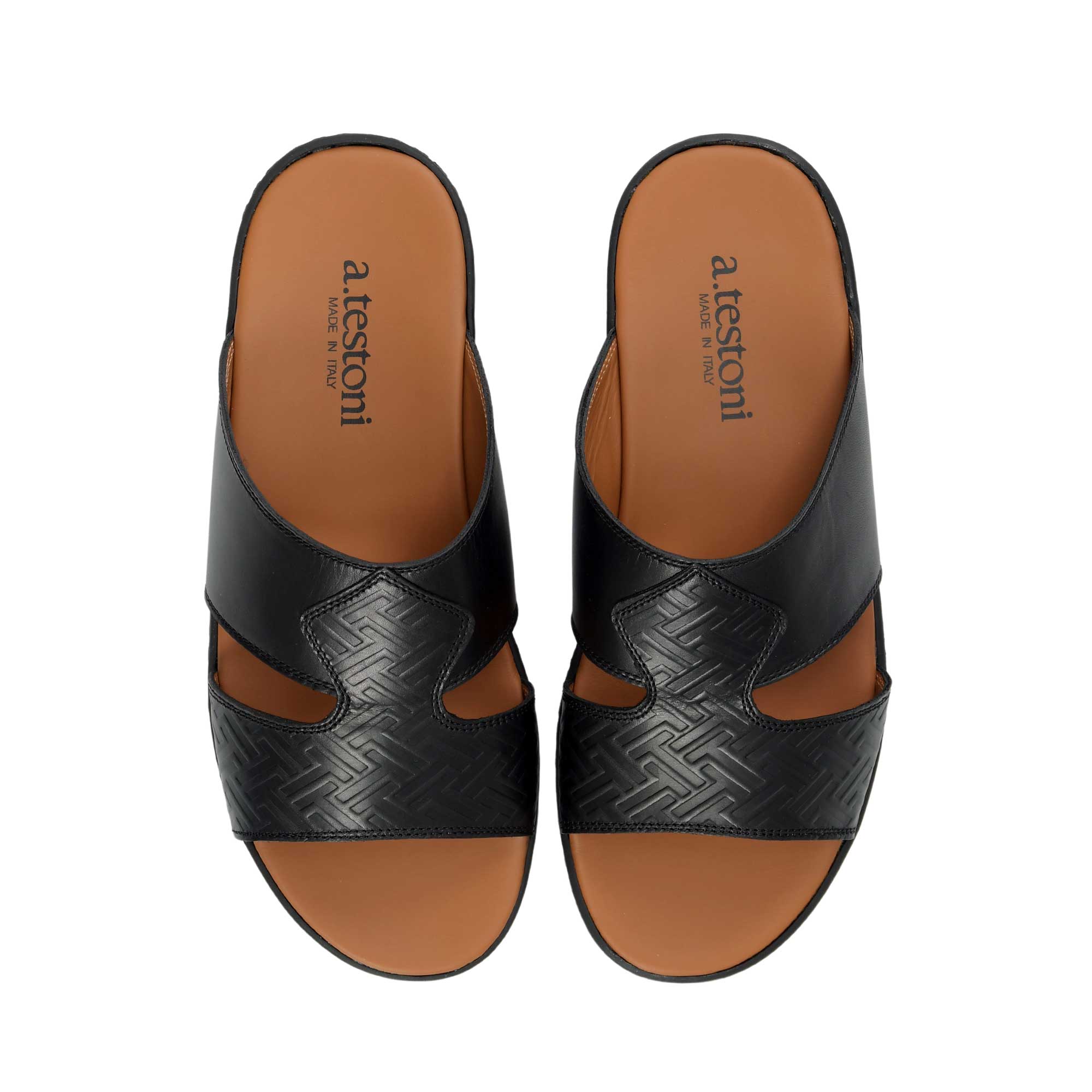 The A.Testoni men's calf Black sandal features a traditional Arabic design that has been carefully crafted using top-quality leather. It's comfortable and lightweight, making it perfect for everyday wear. The sole of the sandal is flexible and made of a strong rubber that provides superior grip. Additionally, the footbed is cushioned for extra comfort. The fully padded leather upper provides maximum foot support and its contemporary design ensures you look stylish whenever you decide to wear them. A.Testoni men's calf Black sandal adds a touch of class and elegance to any outfit. Whether you're attending a formal event or just kicking back with friends, this sandal will deliver exceptional style. So what are you waiting for? Go grab a pair of A.Testoni men's calf Black sandal and experience the comfort and luxury for yourself. SPECIFICATIONS