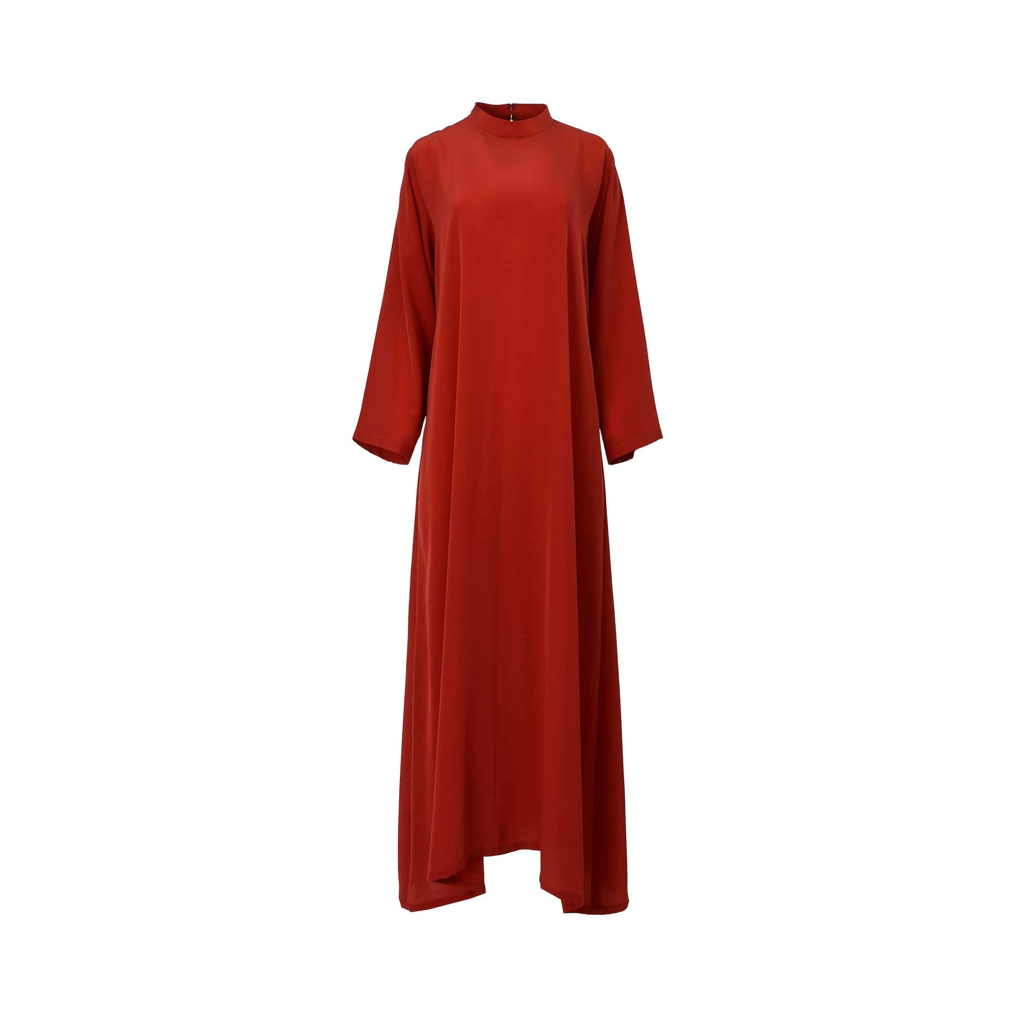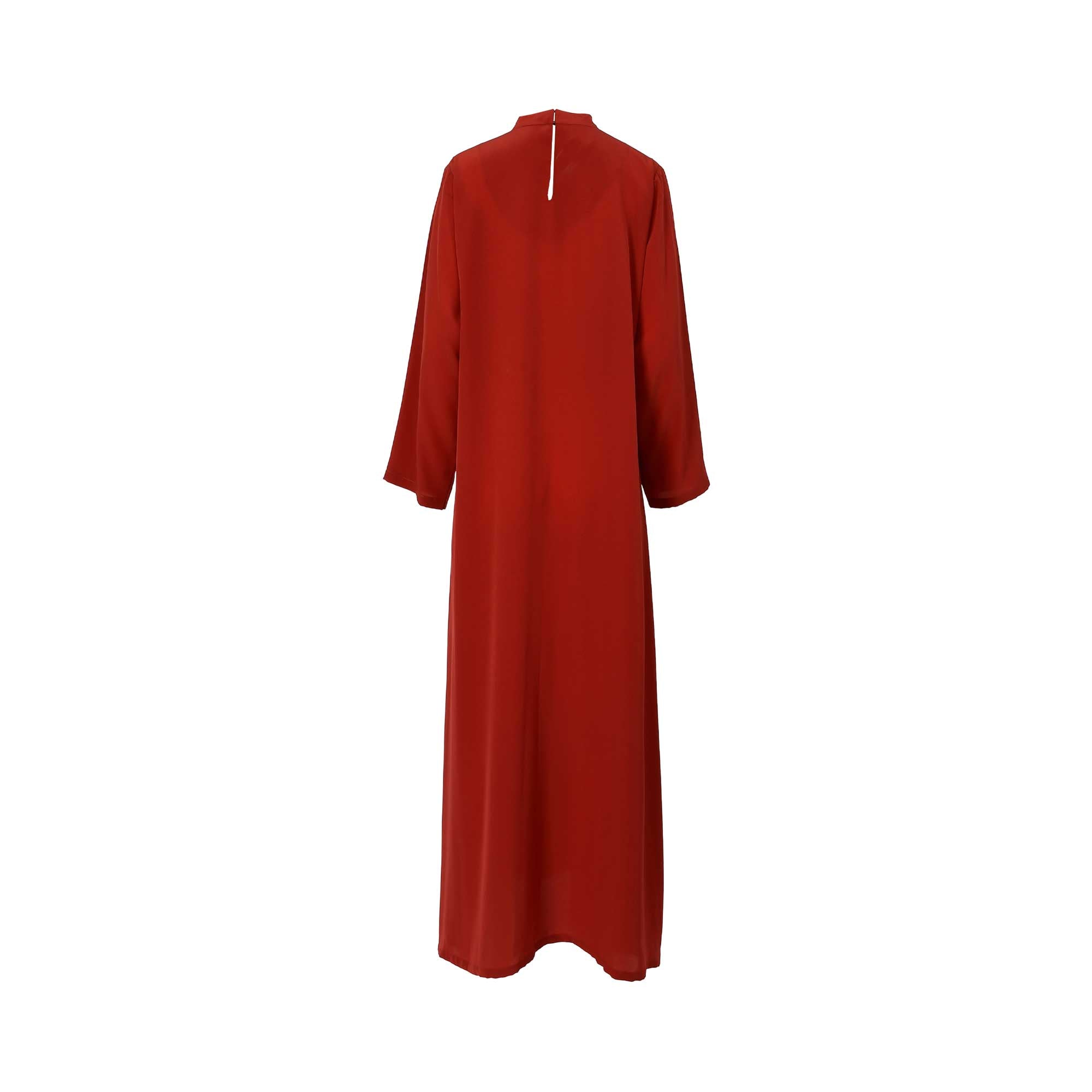 Design Features: * Inner Dress: High neck with back slit-and-button closure, long sleeves, and relaxed A-line silhouette.