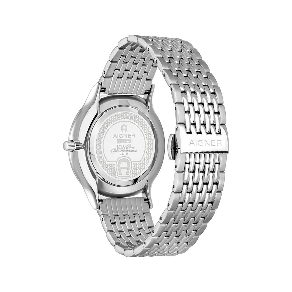 | The bracelet and case are made of strong stainless steel by Aigner. The Blue dial with silver indices and hands gives the WATCH an elegant and modern appearance. It has a Mineral glass material . The brand represents tradition and quality craftsmanship due to its Swiss manufacturing. SPECIFICATIONS :