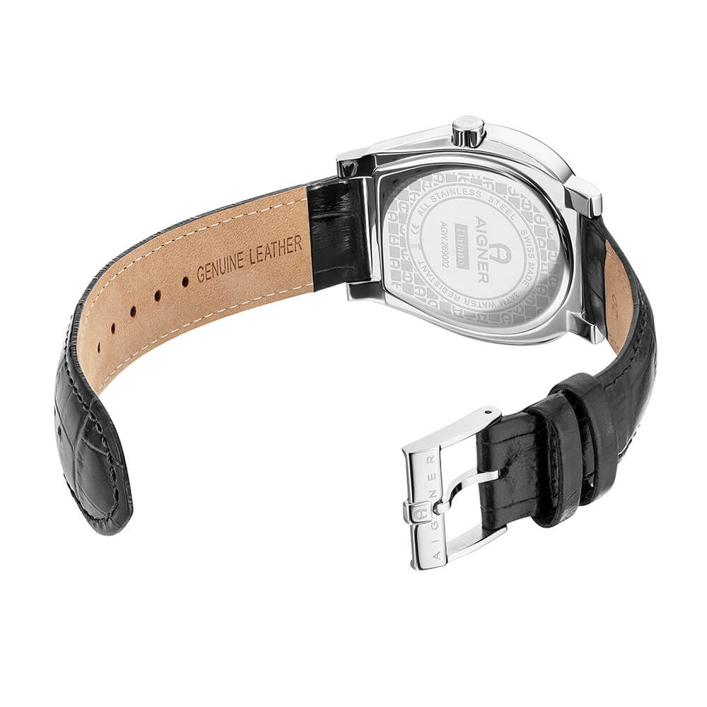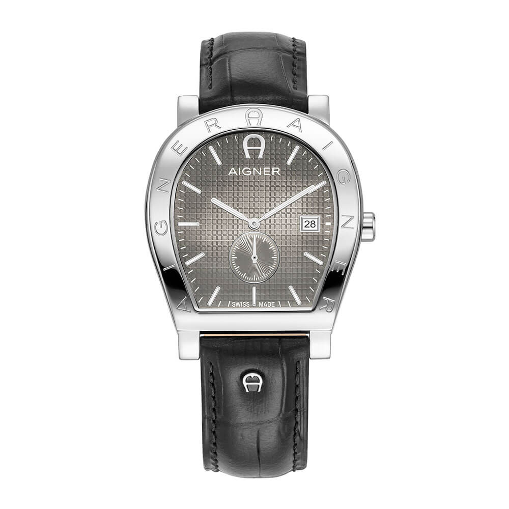 Aigner Daiano Gents Grey Dial Black Leather Strap Watch