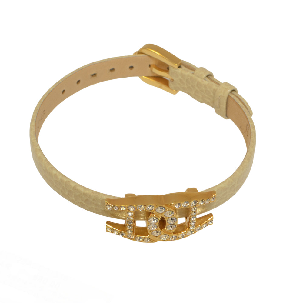 Aigner leather bracelet with beige gold buckle 2 logo and swarovski