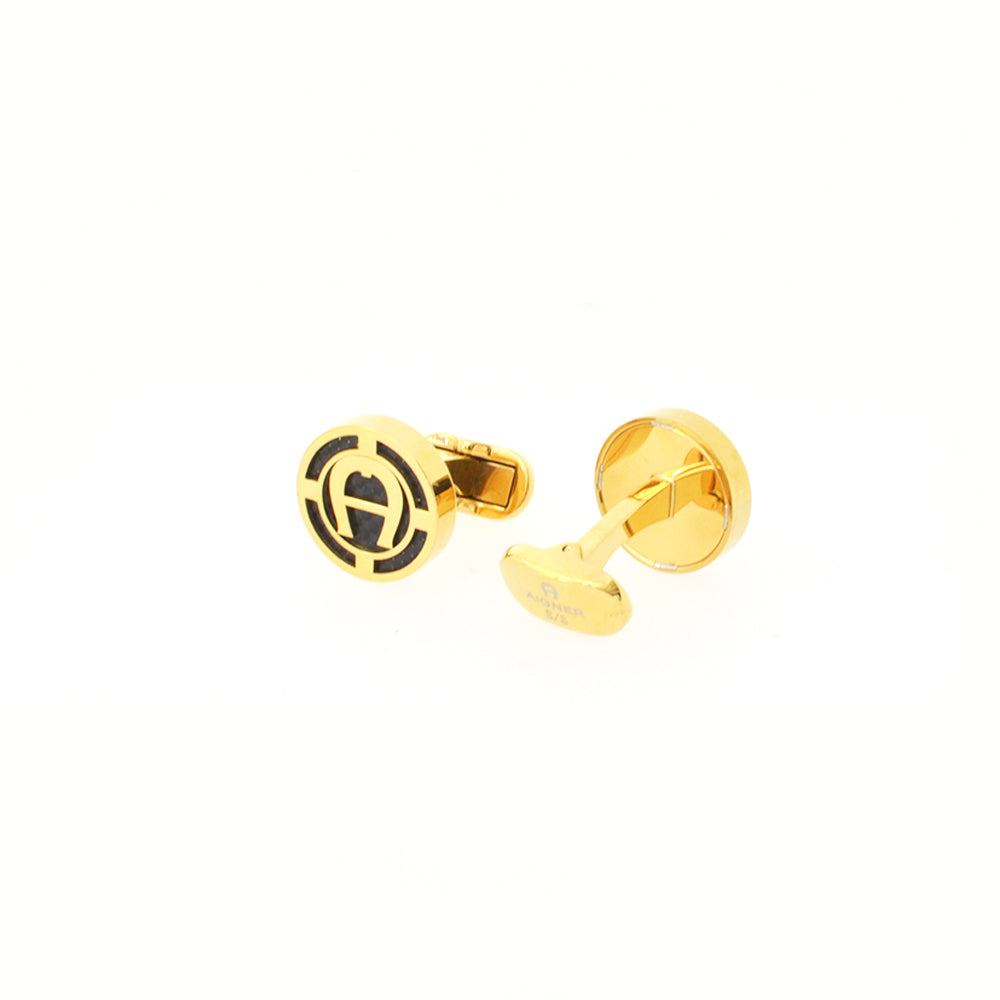 Aigner cufflink gold plated black carbon a logo mid