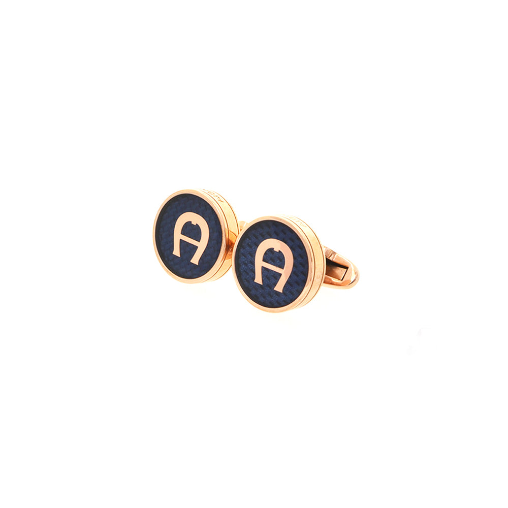 Aigner cufflink rosegold blue carbon a logo mid aigner side
