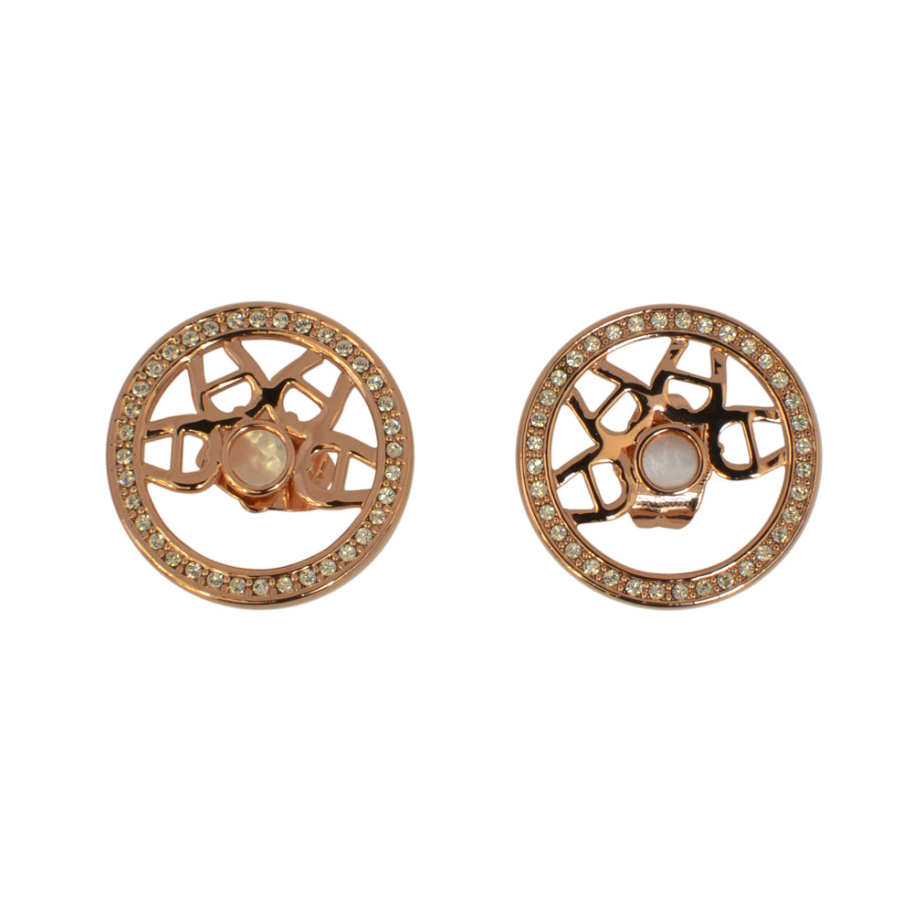 Aigner earring rosegold round with a logo mother of pearl swarovski crystal