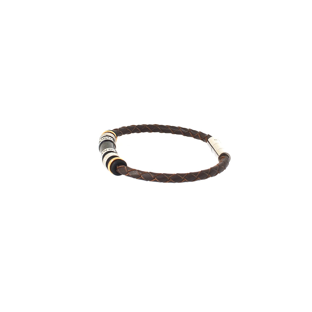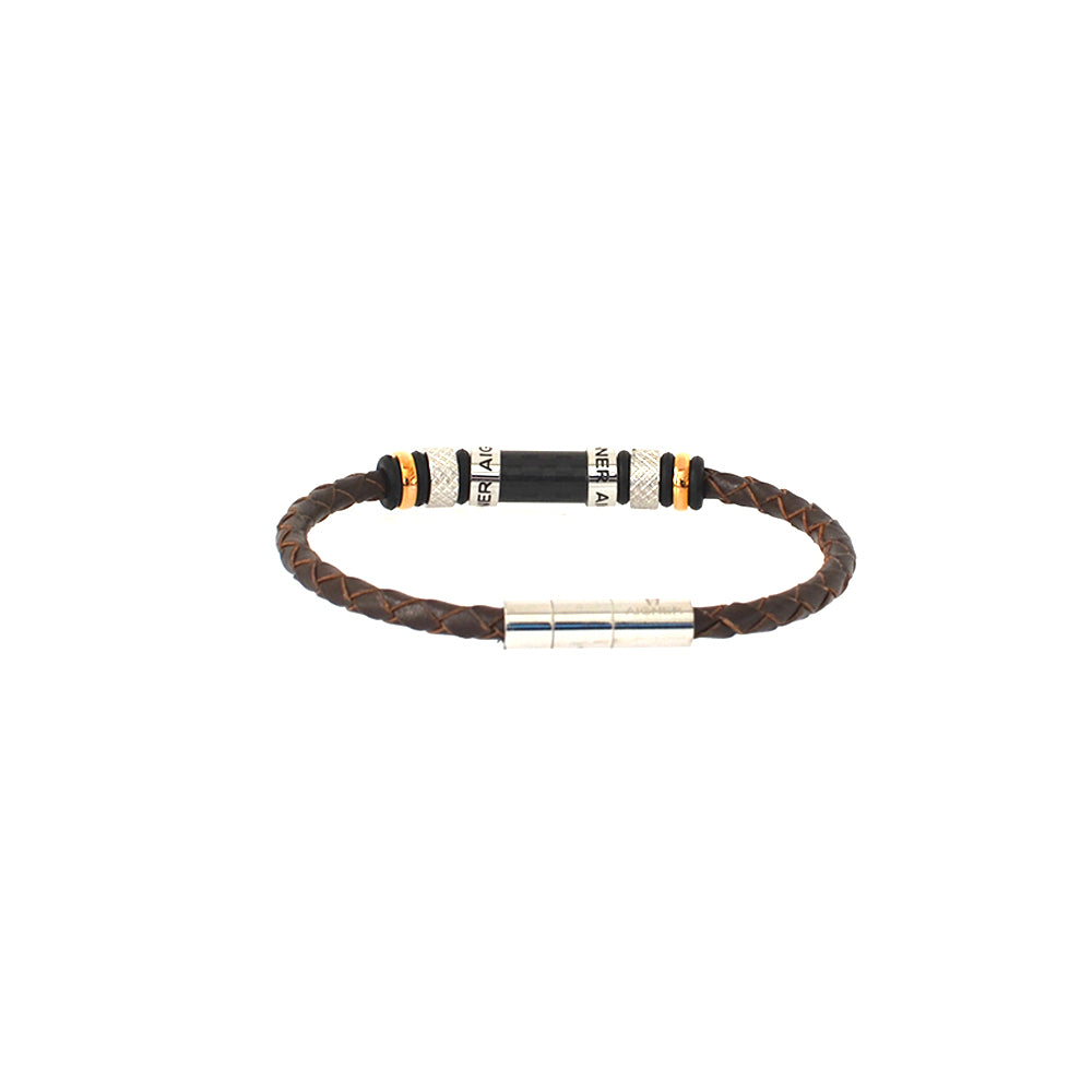 Aigner men bracelet silver braid brown leather rings carbon fiber cylinder