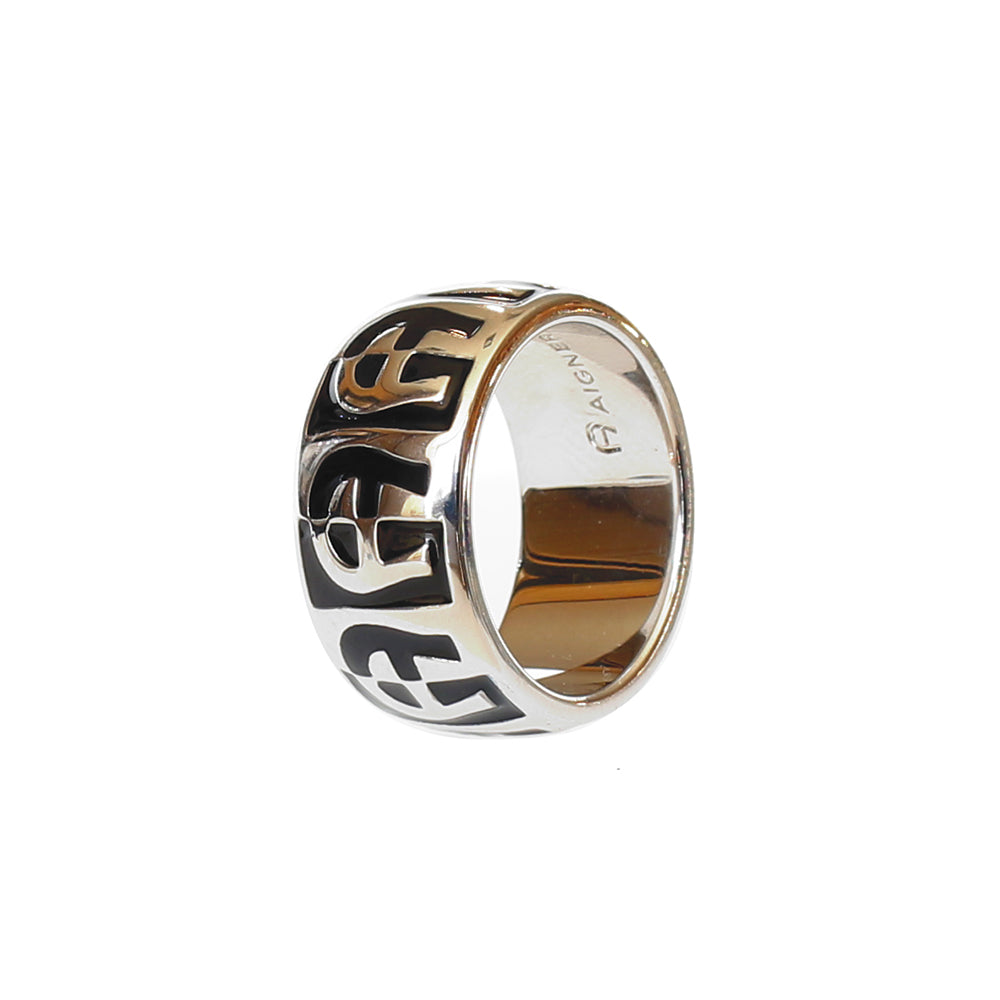 Aigner ring rhodium with black lacquer rounds large 54mm