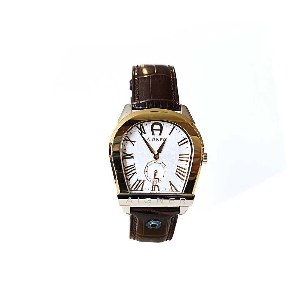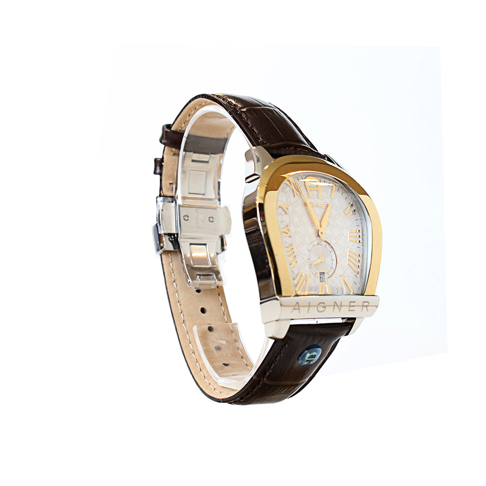 Aigner Viterbo Men's Watch Silver & Gold Plated Case with Silver Dial, Brown Leather Strap and A Shape Case