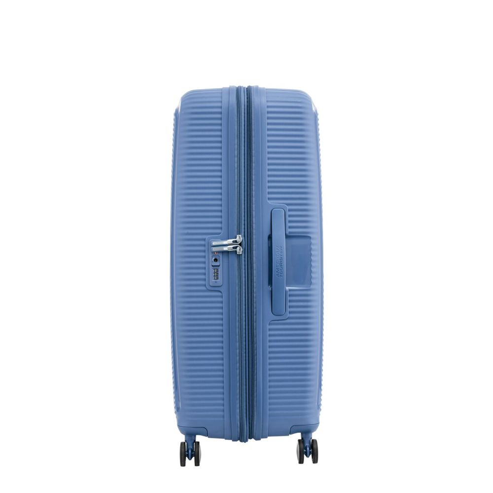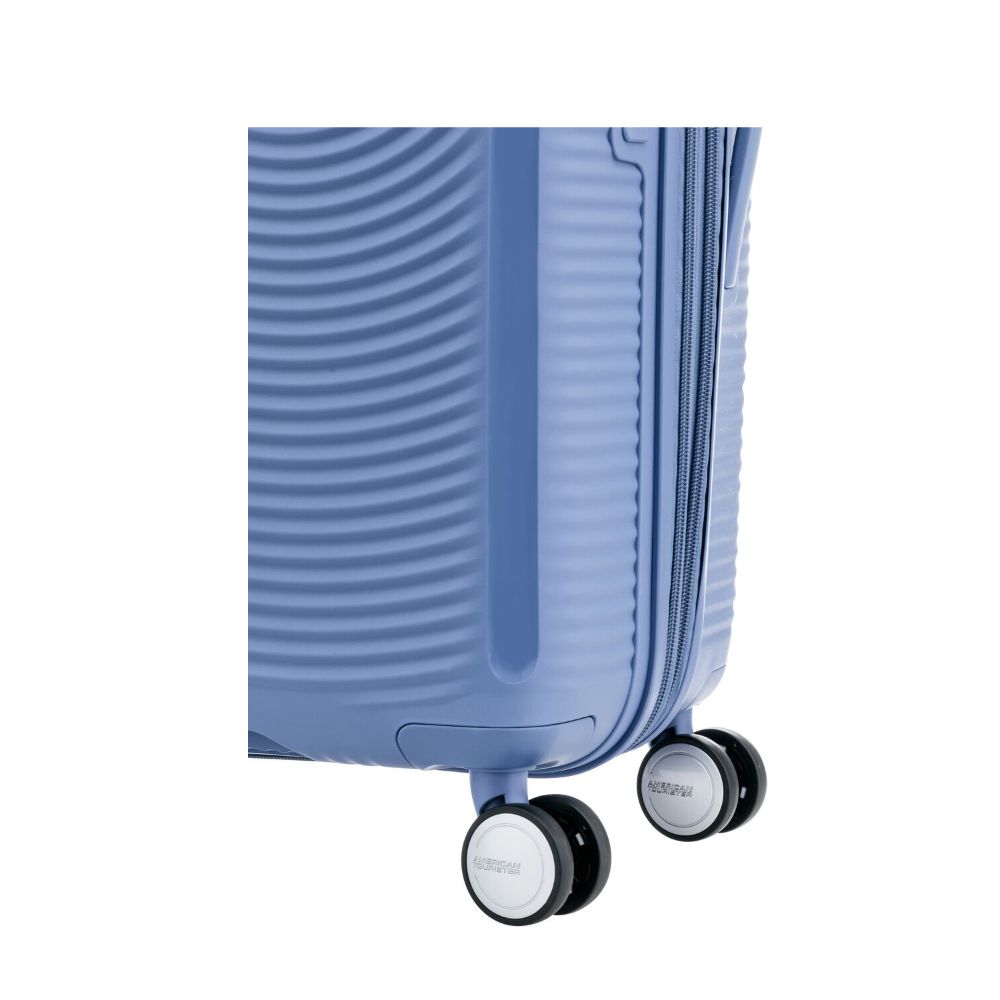 • No details are overlooked in the exterior styling, from the silver American Tourister logo to matching zippers.