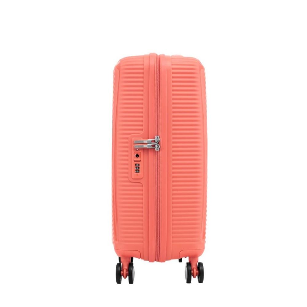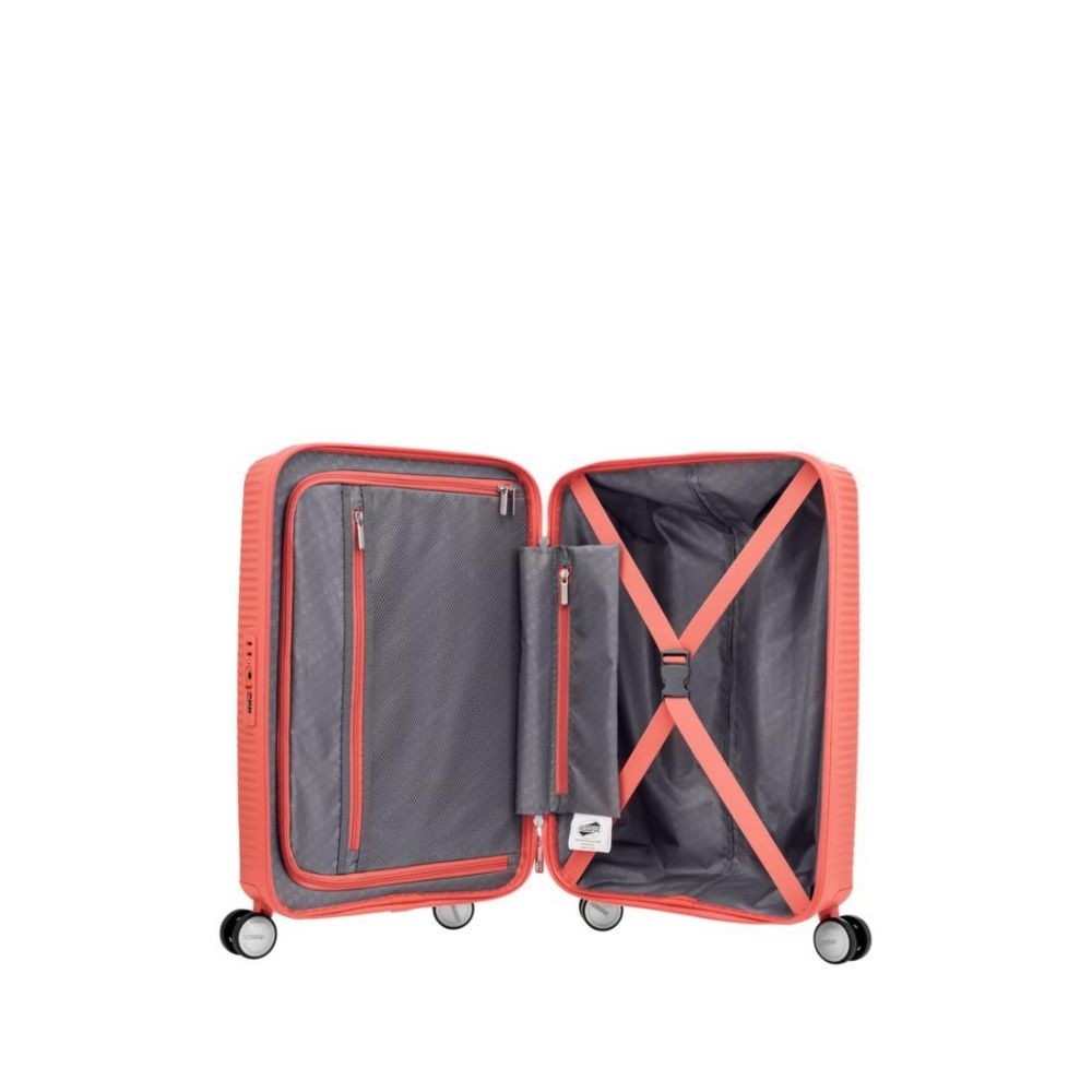 • No details are overlooked in the exterior styling, from the silver American Tourister logo to matching zippers.