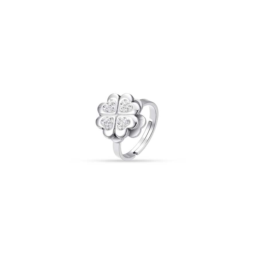 Luca Barra Ladies Steel Ring with Spinning Four-Leaf Clover Adjustable Size