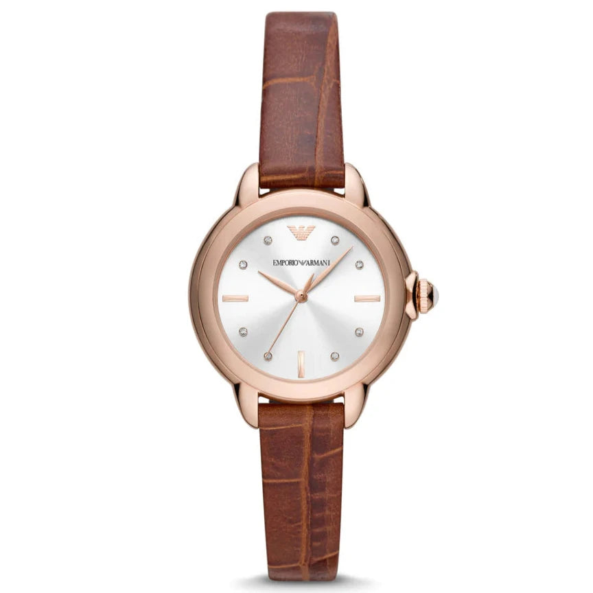 Emporio Armani Women's Three-Hand Brown Leather Starp Watch