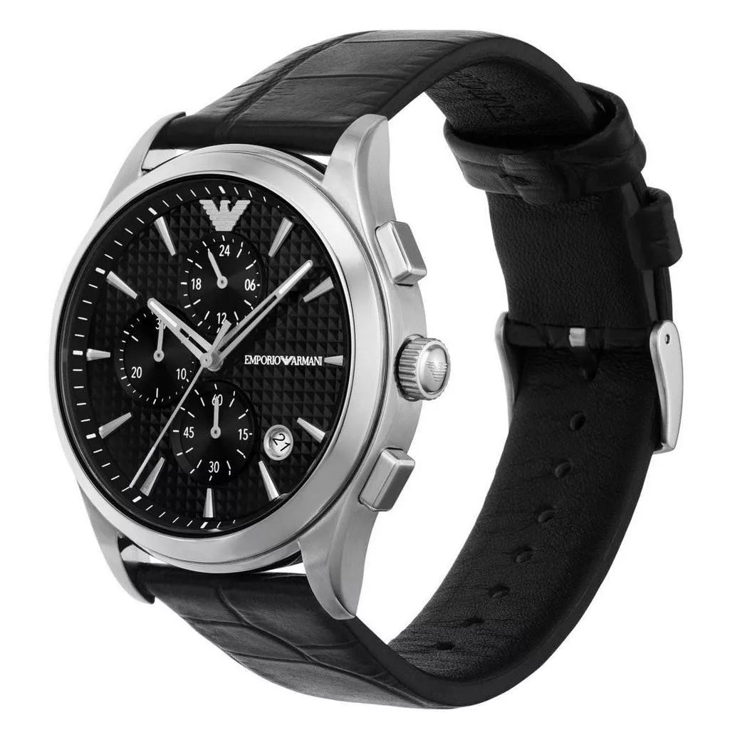 Emporio Armani Chronograph Paolo Gents Black Dial Black Leather Strap Watch