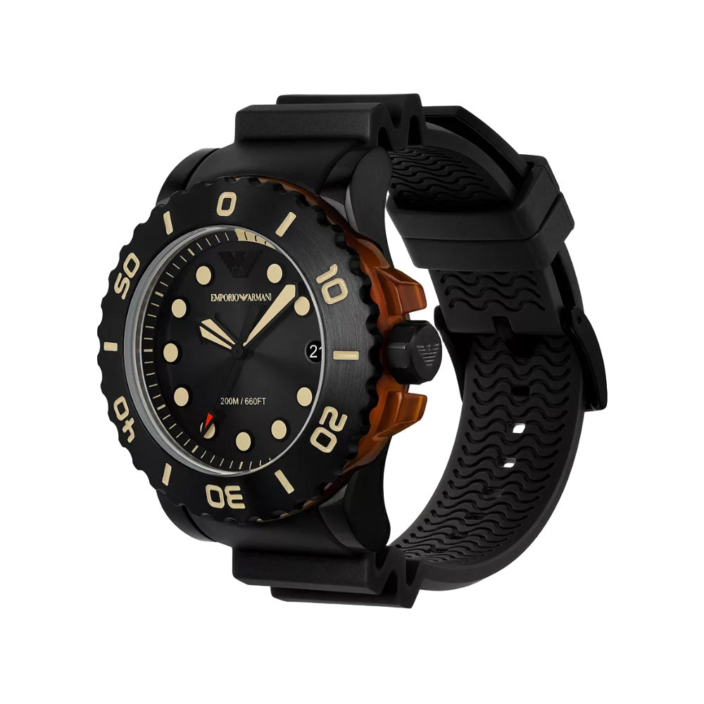 Emporio Armani Men's Three-Hand Date Black Polyurethane Watch