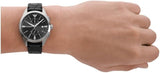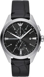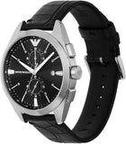 Emporio Armani Gents Chronograph Black Dial Black Leather Strap Watch
