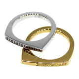 Armani Ladies 2Pcs Ring Silver/Gold Plated With Stones & Armani Brand Name Size 7.5