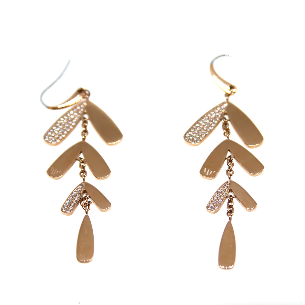 Armani Ladies Earrings Base Metal With Dangling Leaf Style & Stones Rosegold Plated