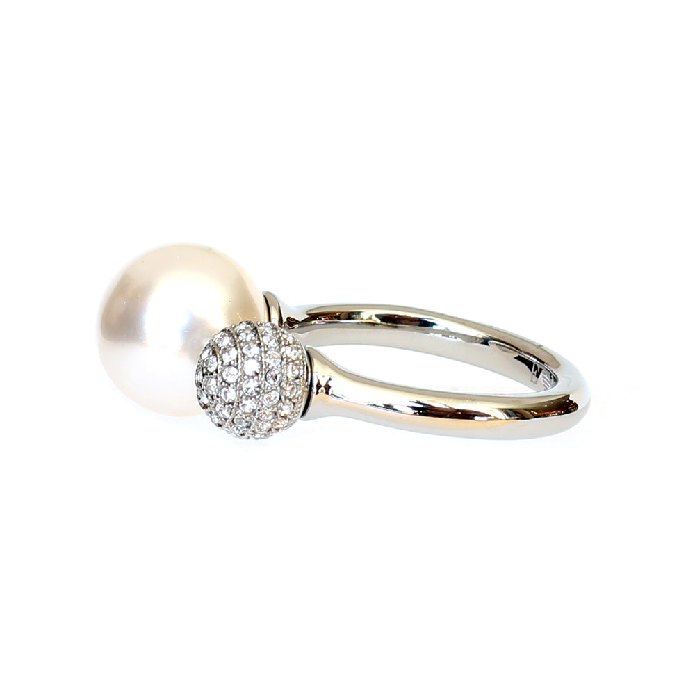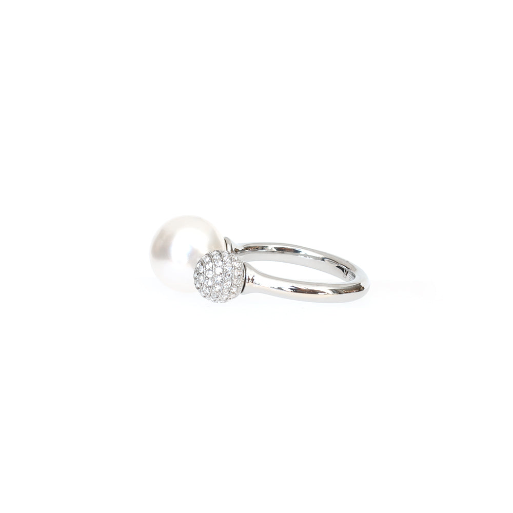 Armani Ladies Ring Stainless Steel Open Style With Pearl & Stones Size 8
