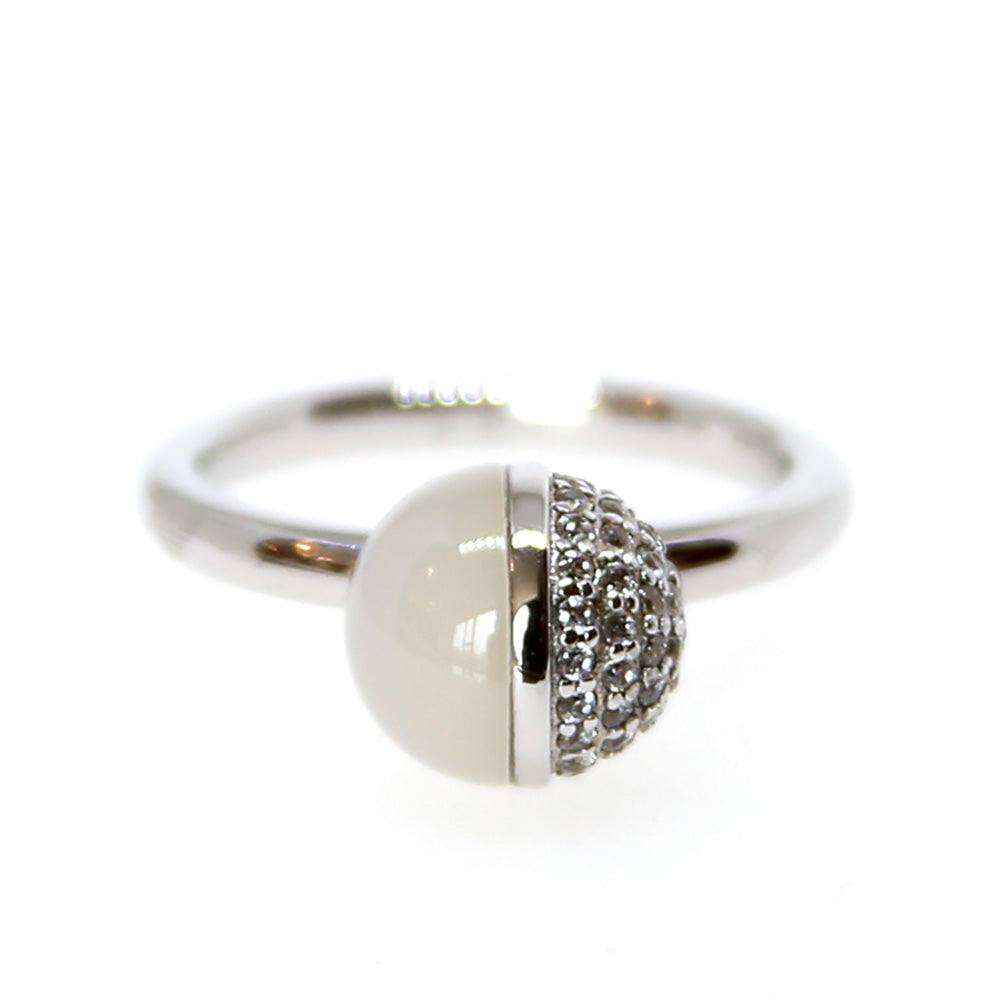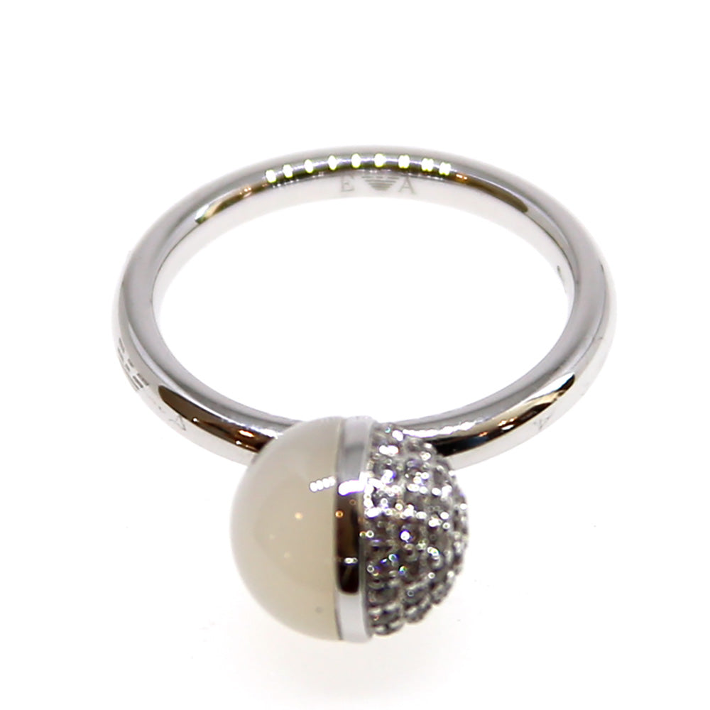 Emporio Armani Ladies Ring Sterling Silver Wtih Zircon & Pearl, Silver Color