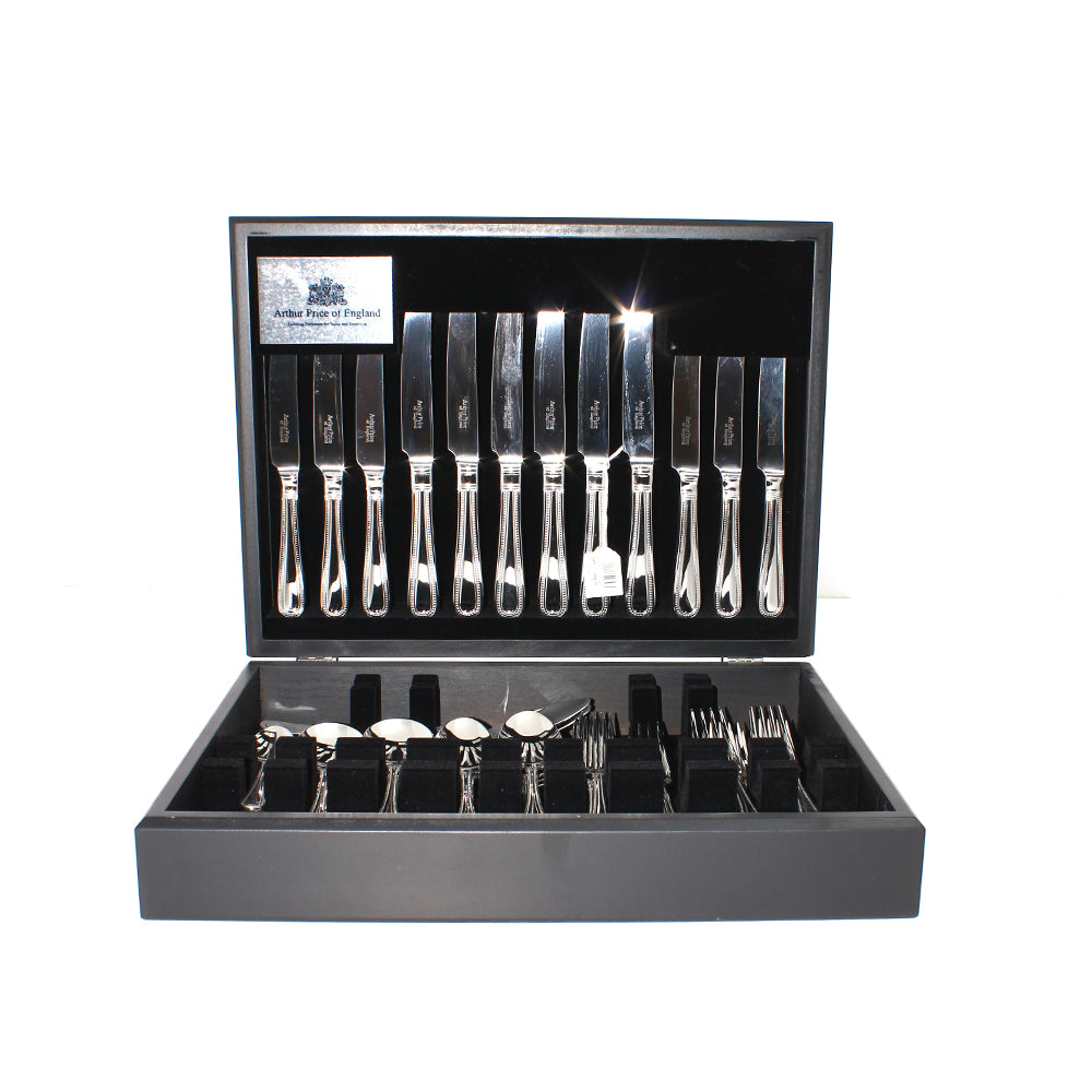 | The Arthur Price Bead Cutlery Set is a stylish and sophisticated cutlery set that is part of the Bead Sovereign Stainless Steel range. It is made from high-quality stainless steel, which not only gives it a sleek and modern look, but also makes it strong and durable. The set includes 44 pieces, providing the perfect amount of cutlery for a family or dinner party. This design is both classic and timeless, making it suitable for any occasion, from casual meals to formal dinners. Another convenient feature of this cutlery set is that it is dishwasher safe, ensuring easy clean-up after a meal. This also makes it a practical choice for everyday use. This comprehensive set provides all the necessary cutlery for a multi-course meal. The Arthur Price Bead Cutlery Set is an elegant and practical choice for any dining table. Its high-quality construction, classic design, and dishwasher safe feature make it a popular choice for households and restaurants alike. SPECIFICATIONS • Brand: Arthur Price • Part of the Bead Sovereign Stainless Steel range • Made from high-quality stainless steel • Includes 44 pieces • Classic and timeless design • Suitable for all occasions • Dishwasher safe for easy clean-up • Comprehensive set for multi-course meals • Elegant and practical choice for any dining table • Popular for both household and restaurant use About Brand Arthur Price is a prestigious British brand that has been producing luxury silverware and cutlery since 1902. Founded by Arthur Price, the brand is known for its high-quality and elegant designs, reflecting traditional craftsmanship and modern sophistication. Their products are handcrafted using the finest materials, with attention to detail and precision. Over the years, Arthur Price has earned a reputation for excellence, catering to royalty and high-profile customers. The brand has also expanded its range to include tableware, glassware, and home accessories, offering a complete dining experience. With a heritage of over a century, Arthur Price remains a symbol of luxury and fine dining, trusted by customers worldwide. |