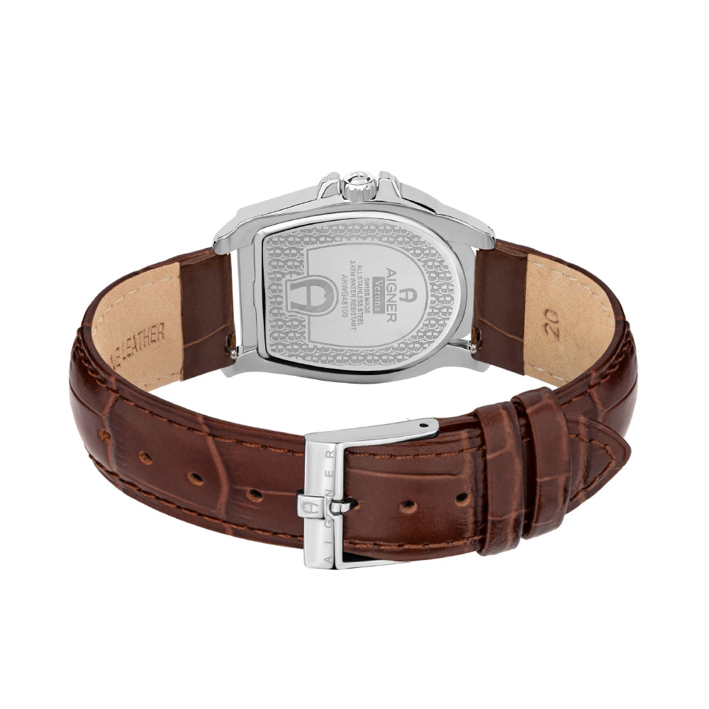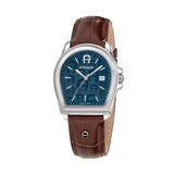 Aigner Verona Gents Blue Dial Stainless Steel Case Brown Leather Strap Watch