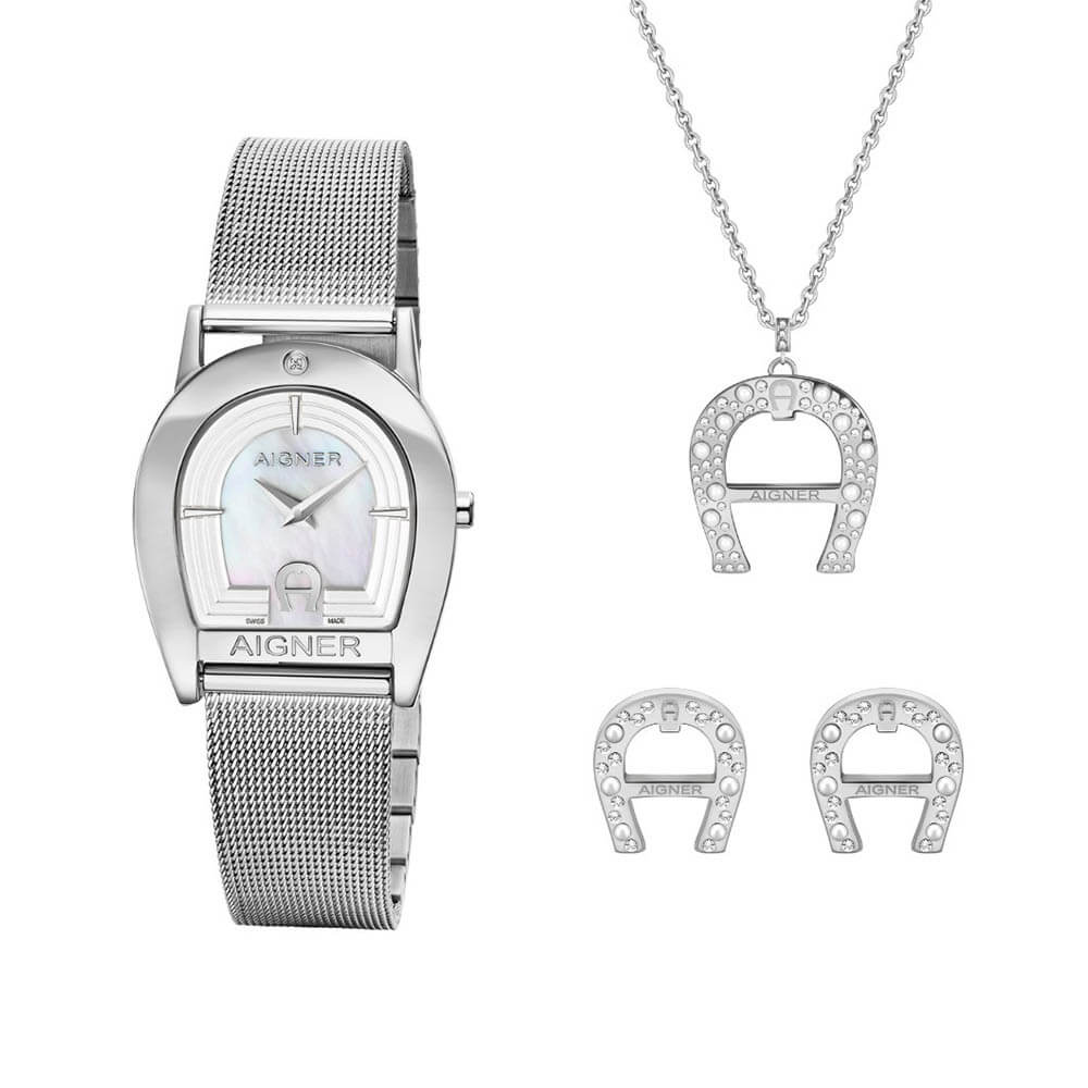 ARWLG0000504-SET AIG VAR-L DIA SS WAT + SS NKL + SS ERG SET Aigner Varese Women's White MOP Dial Stainless Steel Bracelet Watch Set