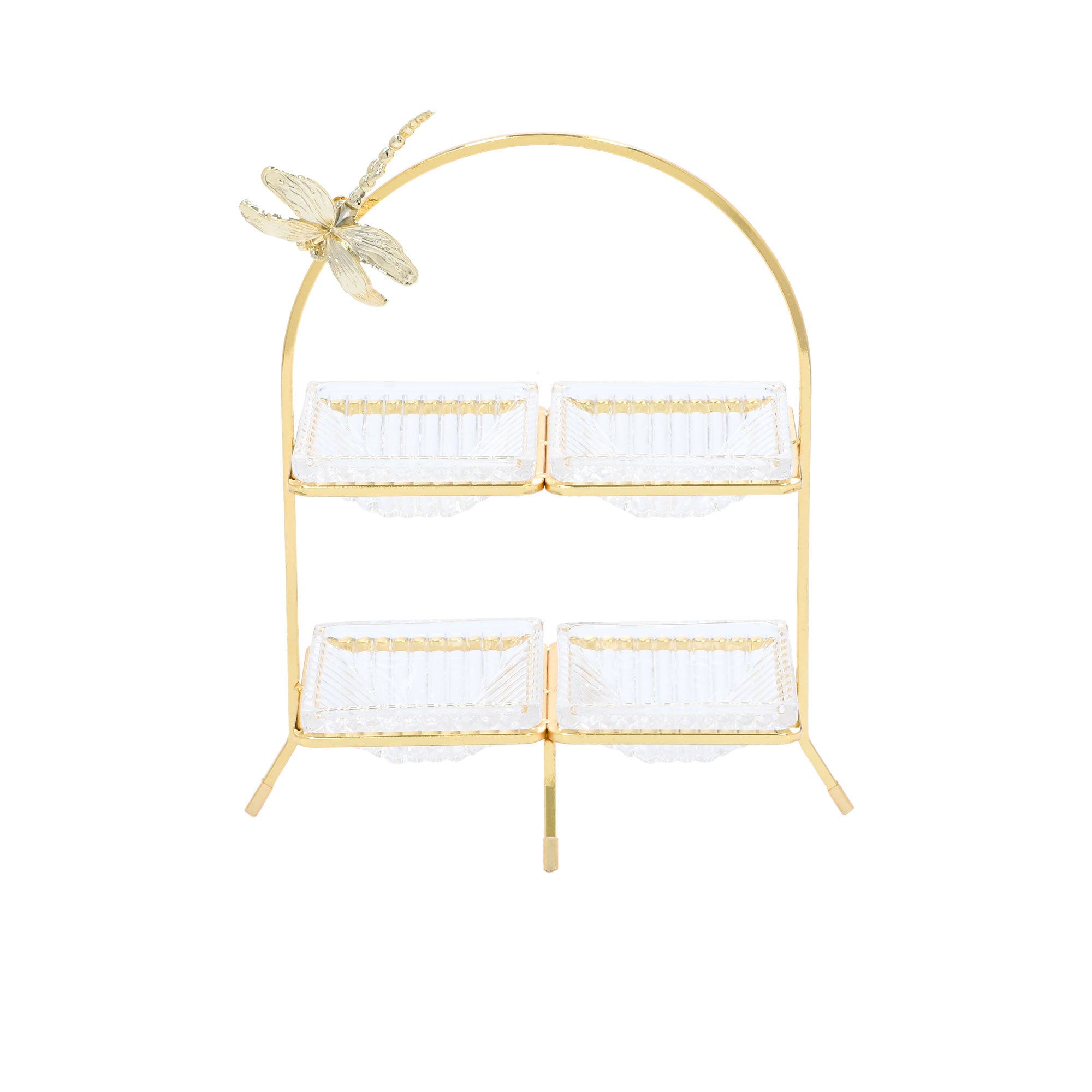 Ele 4PM Luxury Gold Stand Tray With Dragonfly