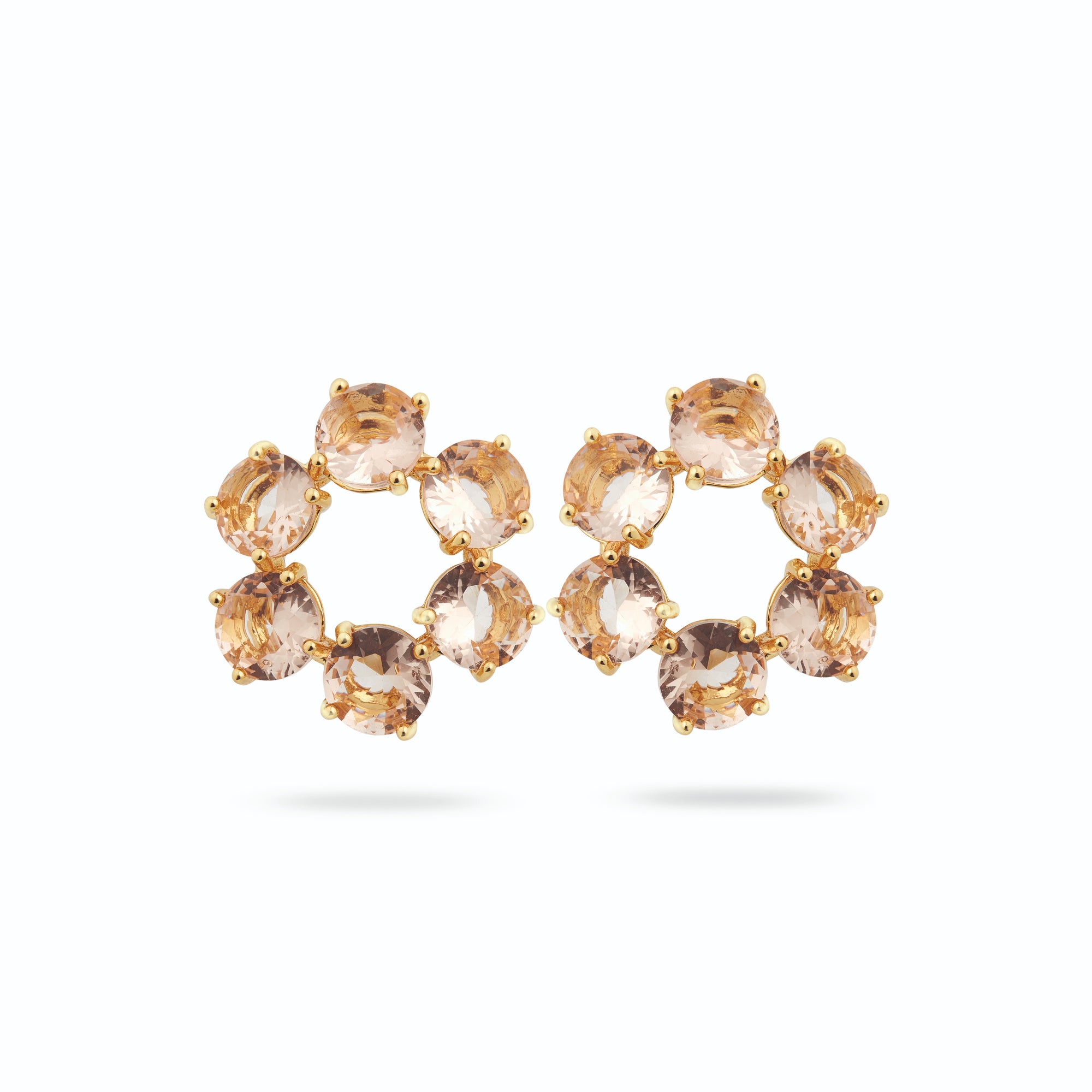 Les Nereides Apricot Peach Diamantine 6 Round Stone Post Earrings
