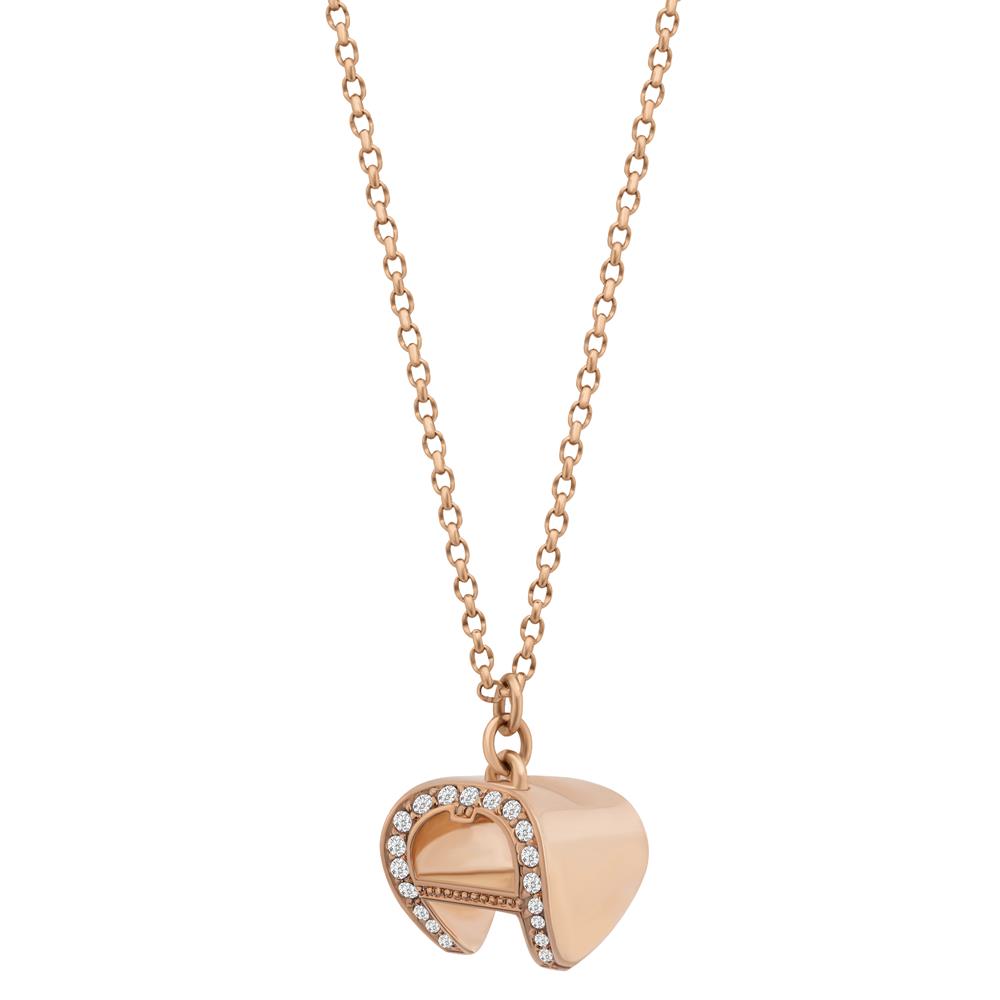 Aigner Necklace Rose Gold Plated with Solid Logo & Heart Pendant Design
