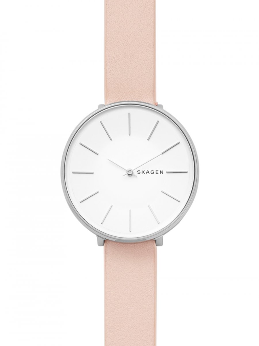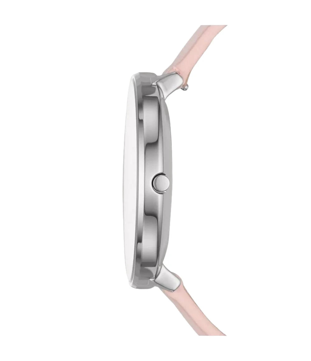 Skagen Karolina Ladies White Dial Silver Case Pink Leather Strap Watch