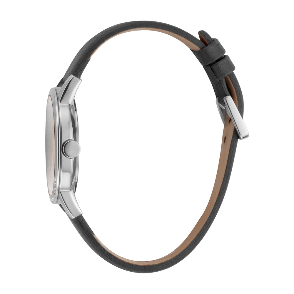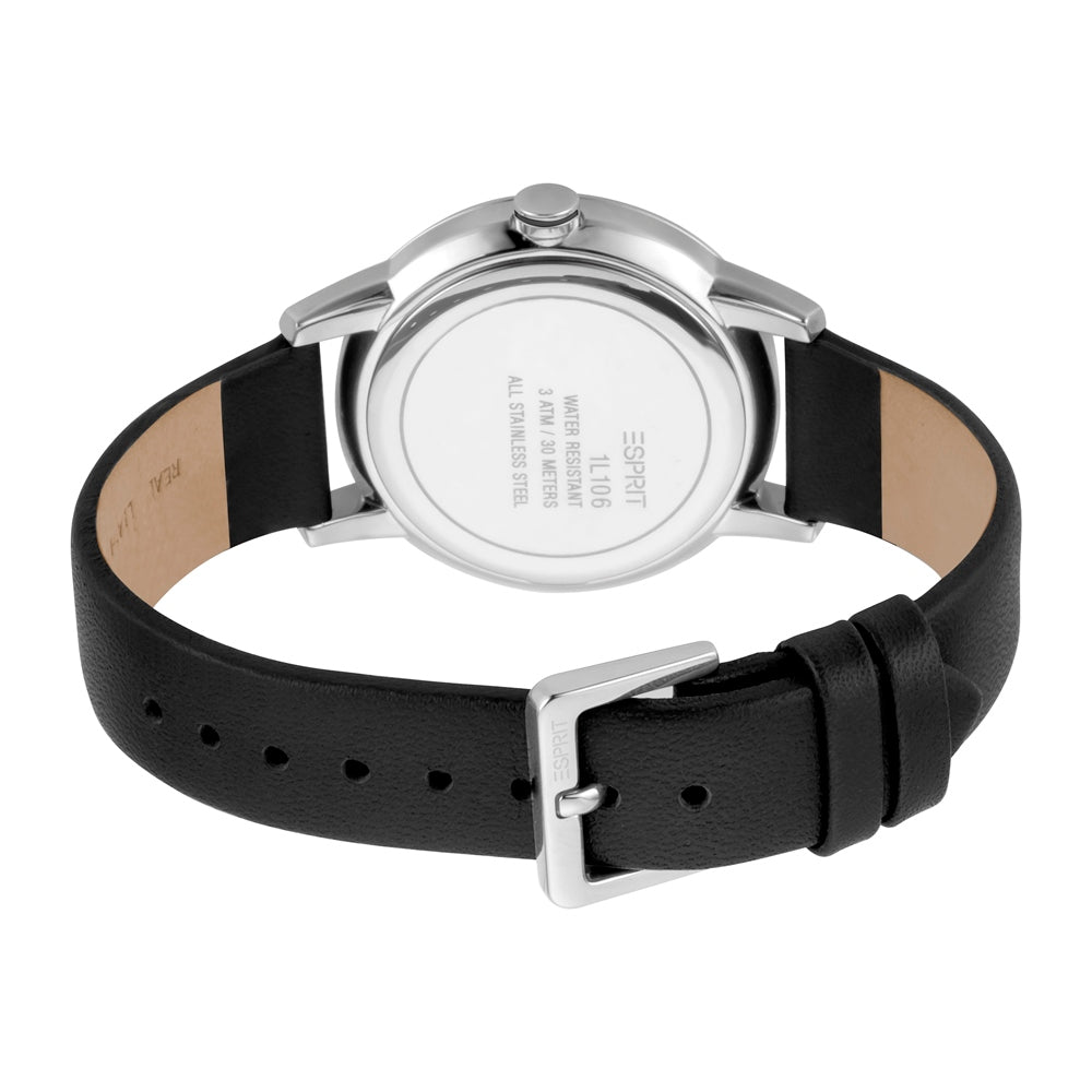 Esprit Ladies Stainless Steel Watch Stones on Bezel Silver Color Dial & Black Strap