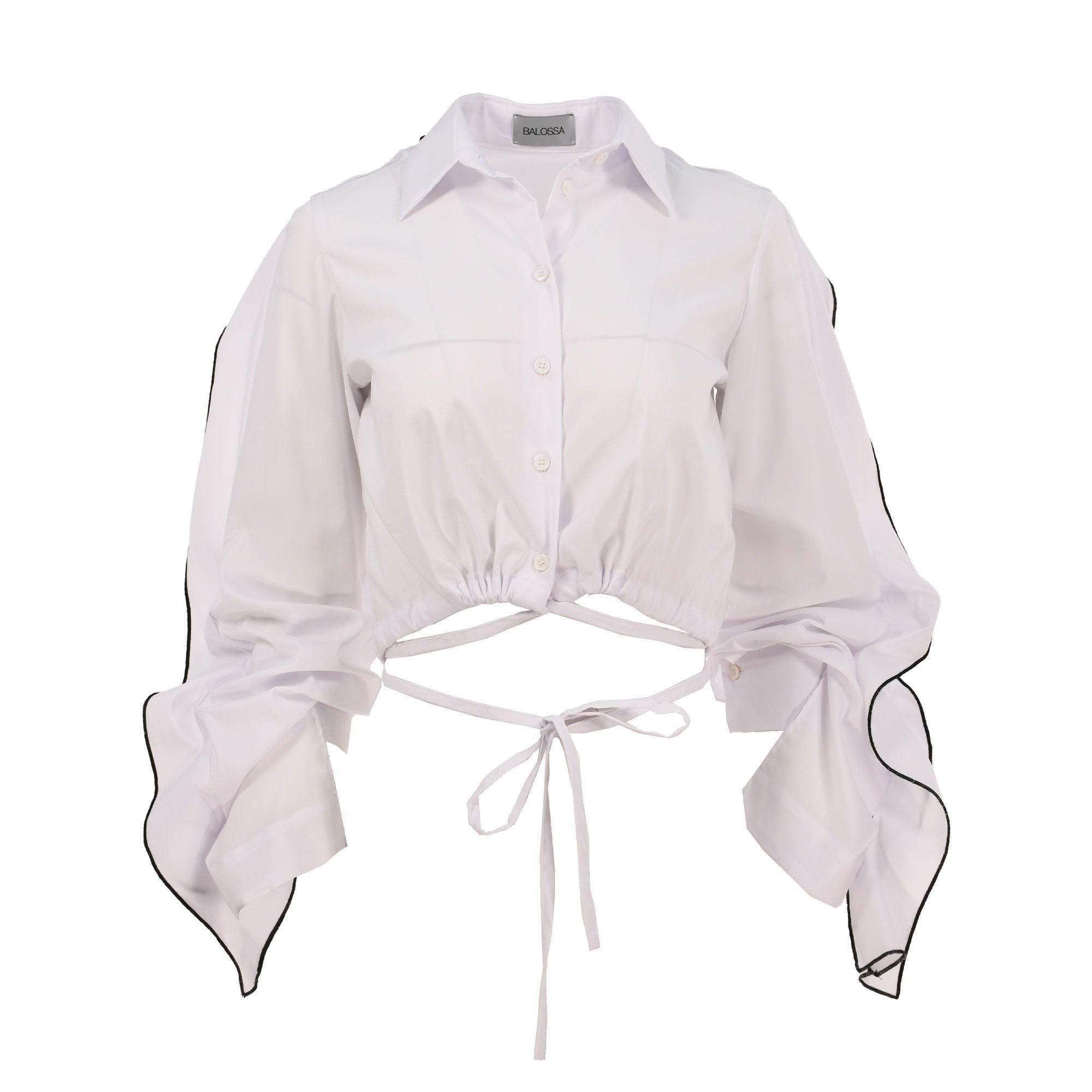 | The latest Balossa shirt has everyone talking about how trendy it is. Highly skilled stitching ensures that it will look great on you. It's all white, with billowy long sleeves that feature ruffle and black pipeline detailing, and a string at the hem. It closes with buttons up the front. The shirt's collared neck makes it suitable for pairing with either pants or a skirt. SPECIFICATIONS :