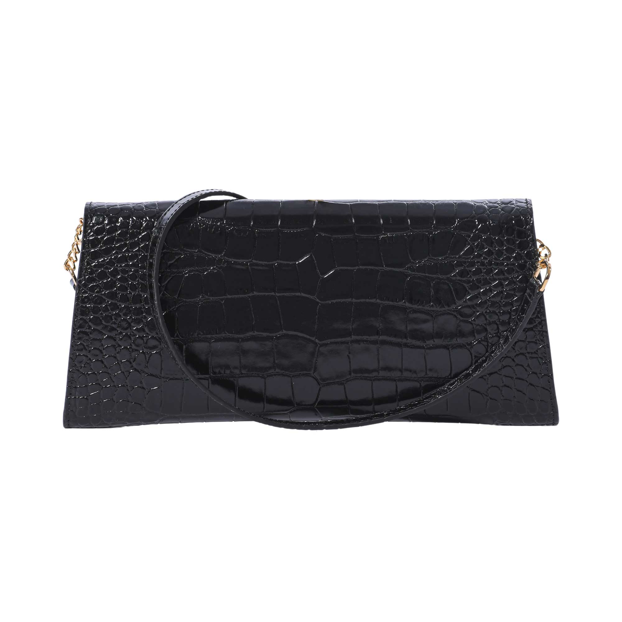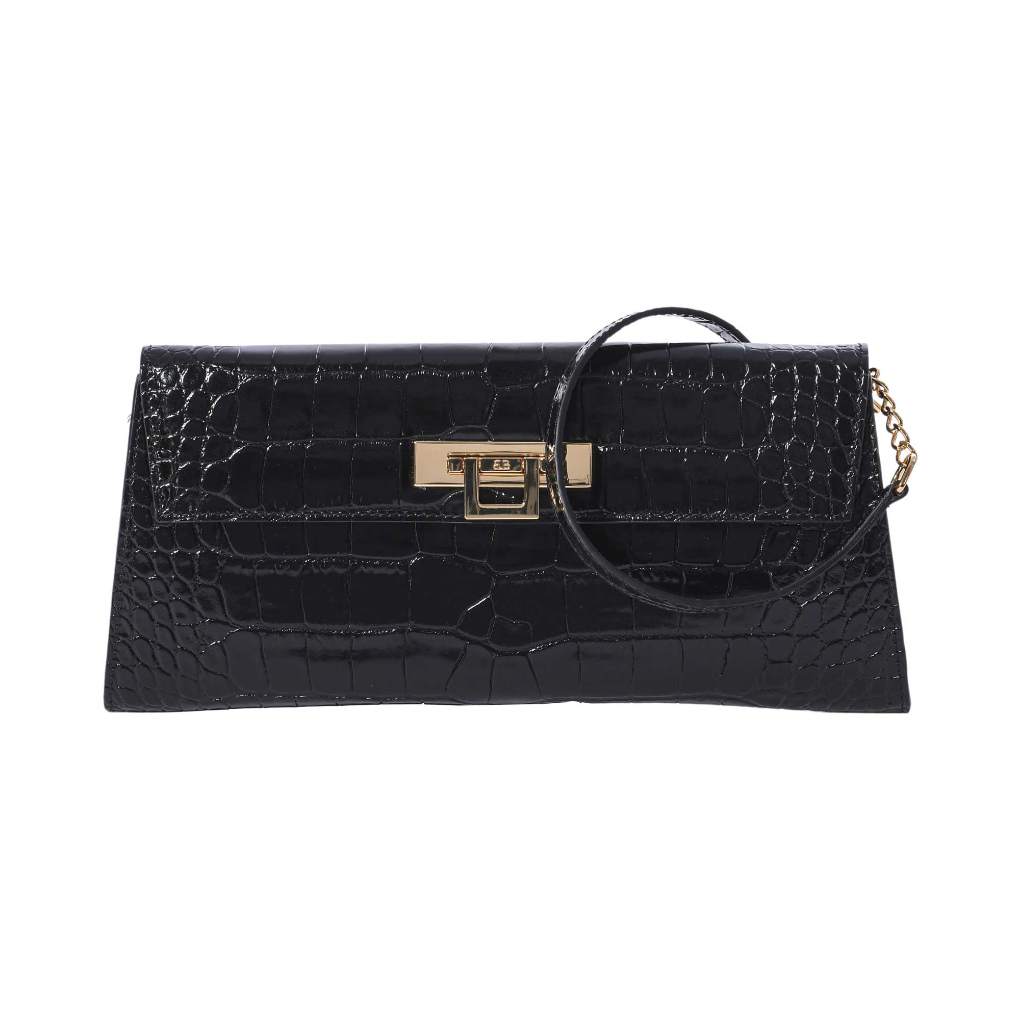 The Fonteyn Clutch is a timeless and elegant piece of workmanship for the modern woman. Crafted from premium Orinoco black calf leather and lined with buttery soft calf suede, the bag has a luxurious feel. The statement gold plated clasp adds a touch of glamour while the optional shoulder strap provides maximum versatility. It is handcrafted by skilled artisans in Spain and Italy with traditional techniques that ensure both beauty and flawless construction. This luxurious yet practical piece of classic style is sure to become a favorite of any fashionable woman's wardrobe. A timeless piece perfect for day to evening events, the Fonteyn Clutch will be sure to turn heads wherever you go. Whether for a special occasion or a night out, you can trust this exquisite bag to bring a touch of glamour to any outfit. With the optional shoulder strap, you’ll be sure to never leave it behind. SPECIFICATIONS