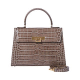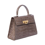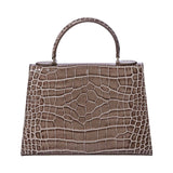 The Lalage Fonteyn Mignon Orinoco Large top handle Handbag with optional crossbody strap offers a fashionable, classical aesthetic. It is made of smooth calf leather with a croc print and it is finished with a gold-plated lock. The bag has been carefully crafted by expert artisans in Spain and Italy with traditional methods. The interior is lined with soft suede and has one zipped pocket for maximum storage. The detachable shoulder strap is extremely useful, enabling you to wear the bag both on the shoulder and as a cross-body, ensuring you are able to find the perfect style for your look. This Large top handle bag is a most stylish choice for everyday or evening use. It is the perfect size for carrying on the go, allowing you to stay organized while still looking fashionably chic. It is a timeless piece that will remain fashionable for many years to come. SPECIFICATIONS