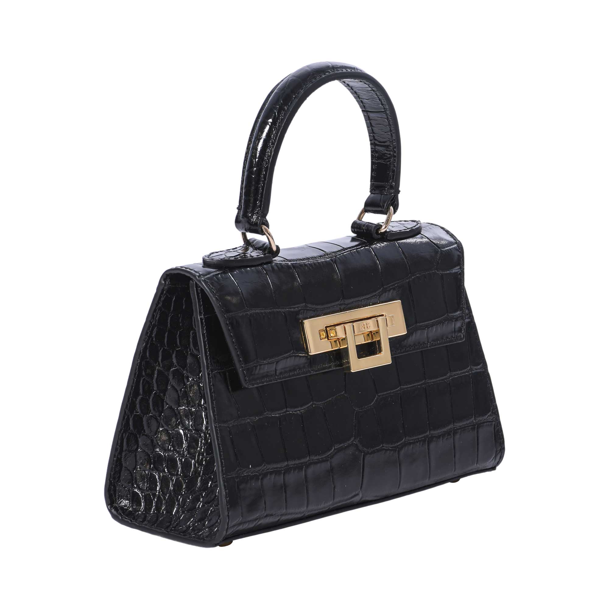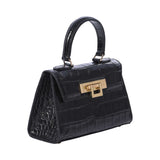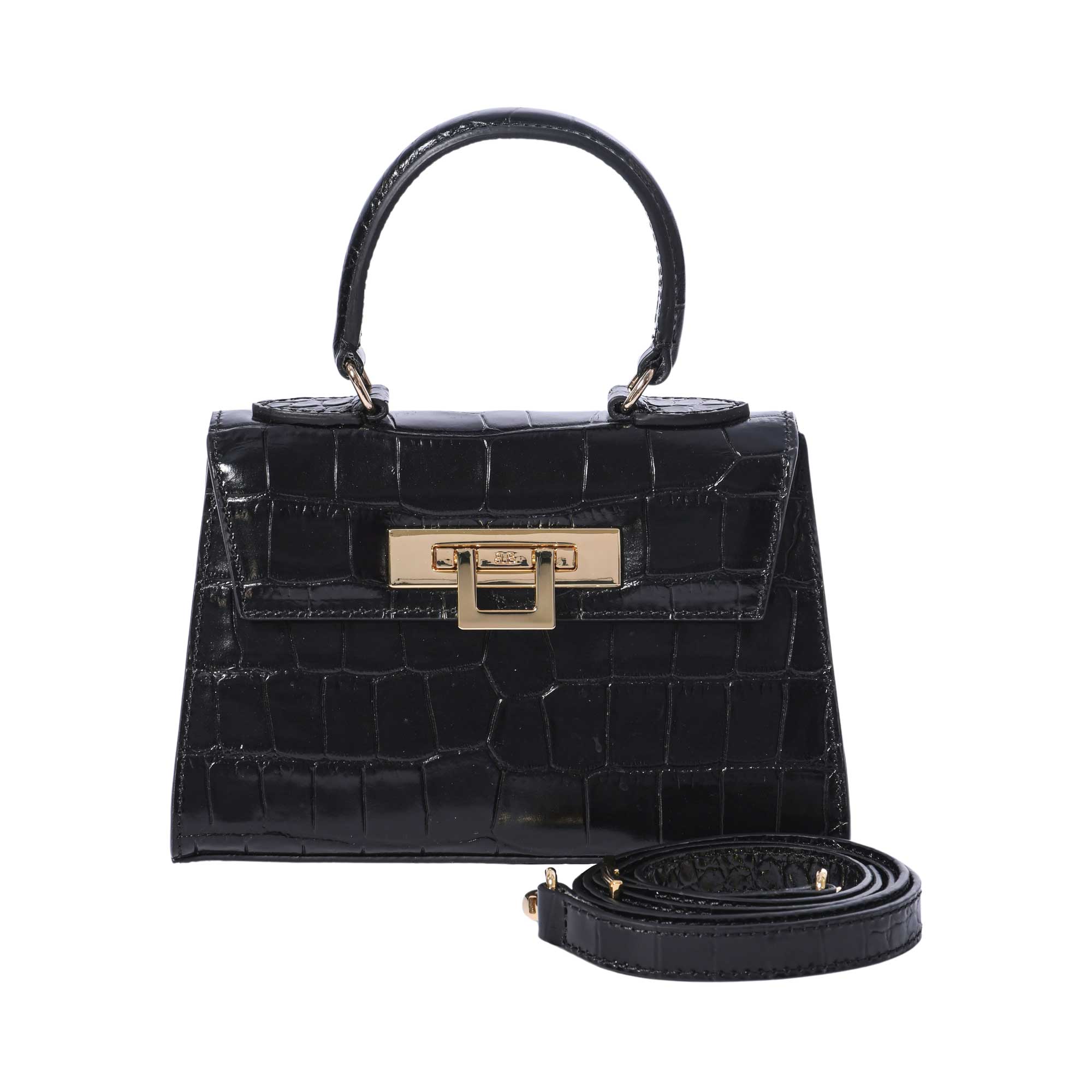 The Lalage Fonteyn Small top handle Handbag with optional crossbody strap offers a fashionable, classical aesthetic. It is made of smooth calf leather with a croc print and it is finished with a gold-coloured lock. The bag has been carefully crafted by expert artisans in Spain and Italy with traditional methods. The interior is lined with soft suede and has one zipped pocket for maximum storage. The detachable shoulder strap is extremely useful, enabling you to wear the bag both on the shoulder and as a cross-body, ensuring you are able to find the perfect style for your look. This small top handle bag is a most stylish choice for everyday or evening use. It is the perfect size for carrying on the go, allowing you to stay organized while still looking fashionably chic. It is a timeless piece that will remain fashionable for many years to come. SPECIFICATIONS