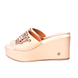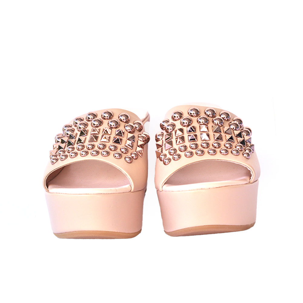 Stylish wedges in beige are elegant companions. The front shoe was decorated with striking metals and beads. The leather lining ensures great comfort, upper part is created from designed genuine leather - full grain leather. The inside material is leather, the insoles is made of leather that give great comfort. The sole is produced from high-quality material and has good grip to surfaces.