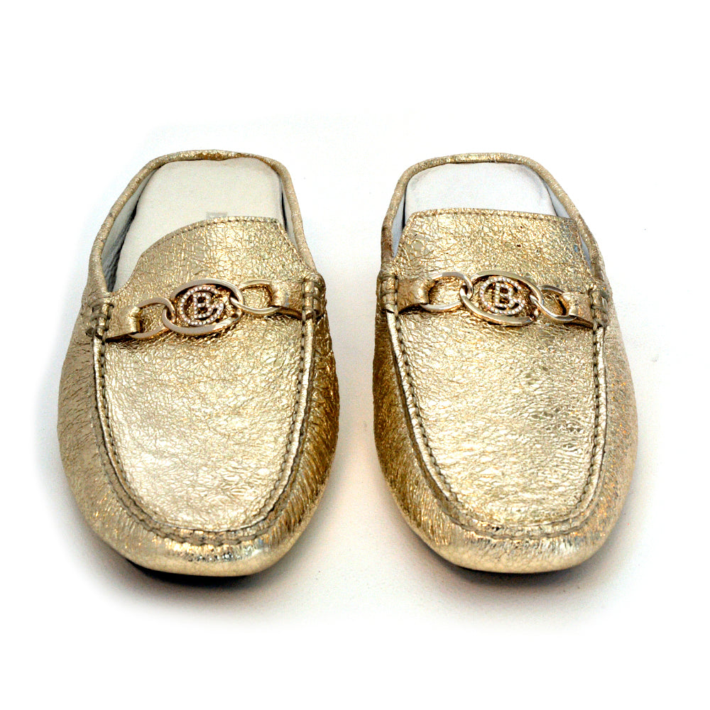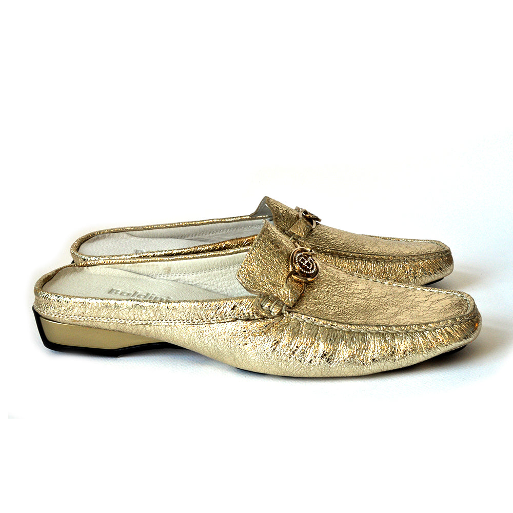 Eye-catching slip-on style,featuring a round toe designed with gold-tone hardware,full grain leather with breathable lining made of leather. Comfort is provided by the insoles made of leather.
