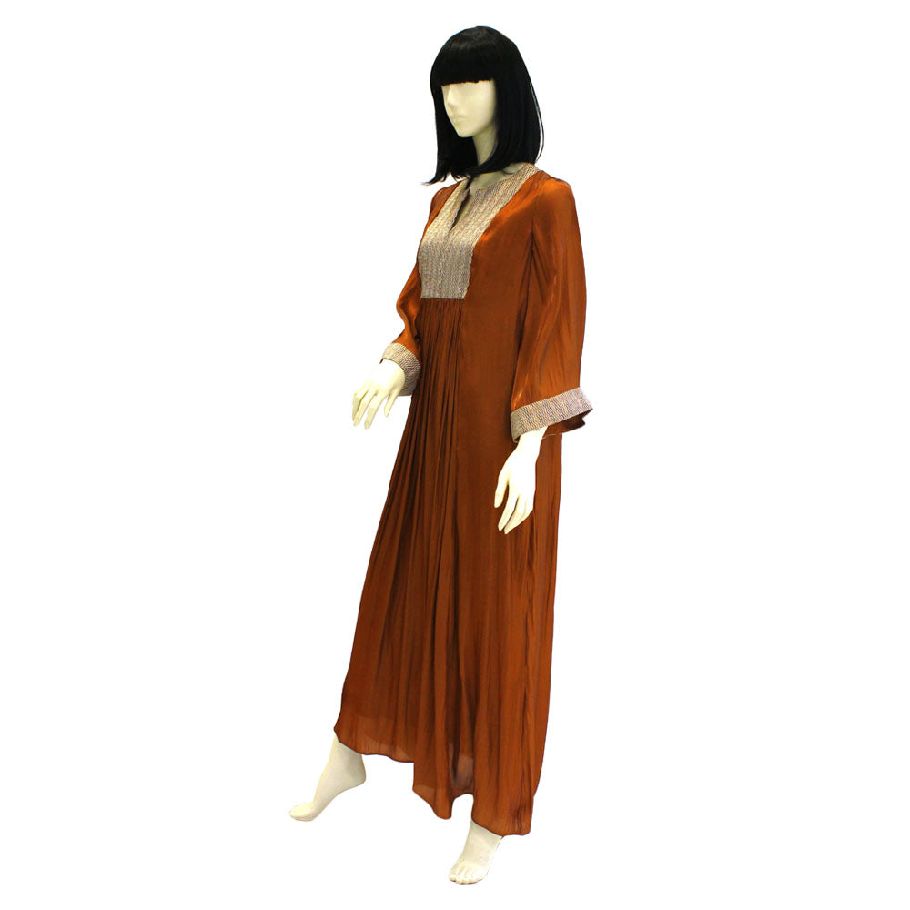 This luxurious Dress from Baruni combines feminine sensibilities with a modest aesthetic. Cut from floaty crepe, the fluid silhouette is heavily detailed at the bodice, and sleeves hem, with gentle pleats softening the look, swing in every steps on flared and pleated skirt. Team it with sparkling silver accessories for any occasions. Design details - cut-out round neckline, long sleeves, embellished detail on bodice and sleeves hem, flared and pleated skirt.