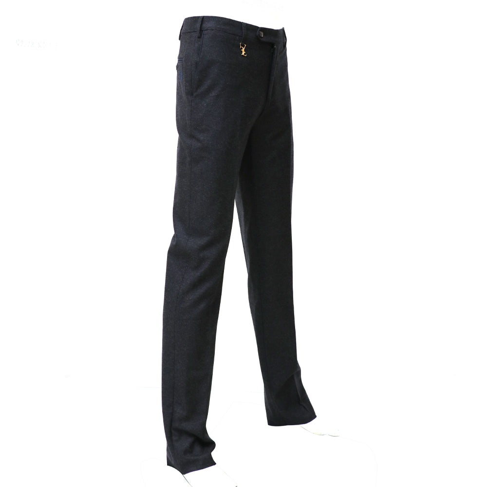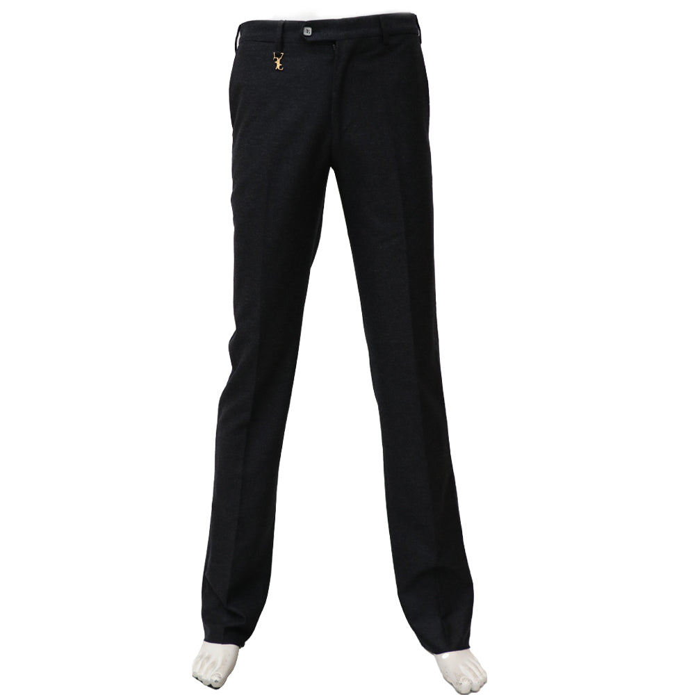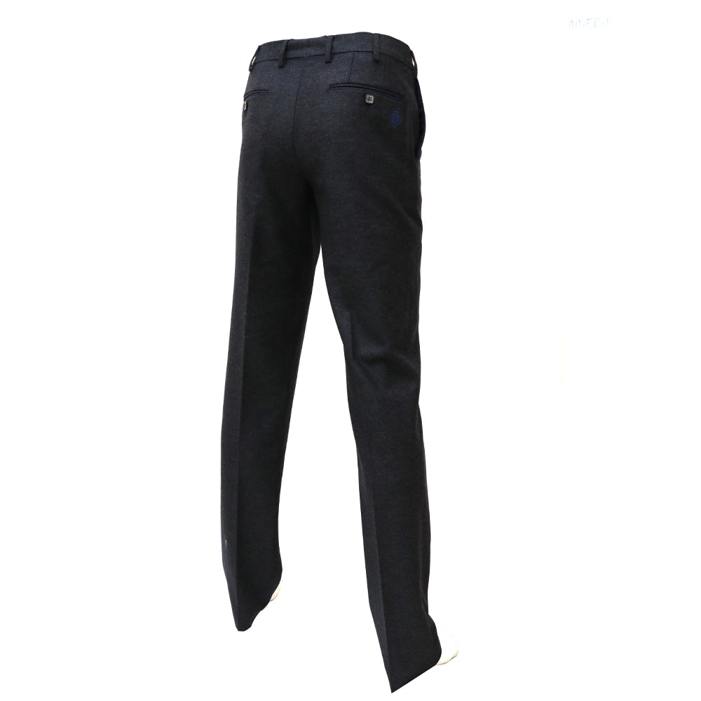 Billionaire charcoal color formal trouser, featuring a classic cut, made up of a comfortable fabric such as 100% wool. pleated model features 2 slant pockets on the front and 2 slits with button at the back. with the brand crest embroidered at the right back pocket. square logoed buttons made up of mother of pearl.