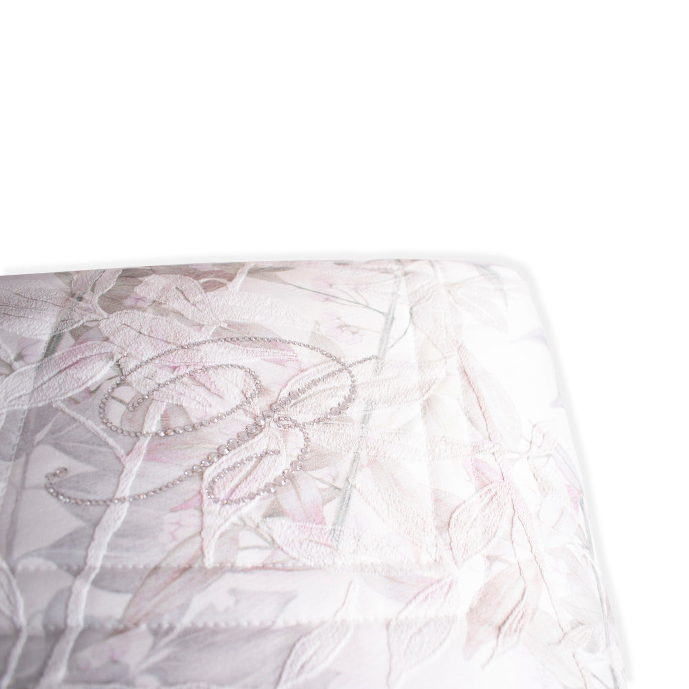 Bedspread for King Bed embroidered with logo in Swarovski crystals. Top side: 100% plain cotton satin