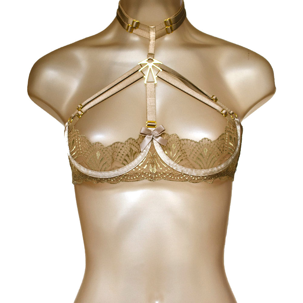 Luxurious embroidered tulle adds a sensual geometic edge to this sophisticated bodice bra
