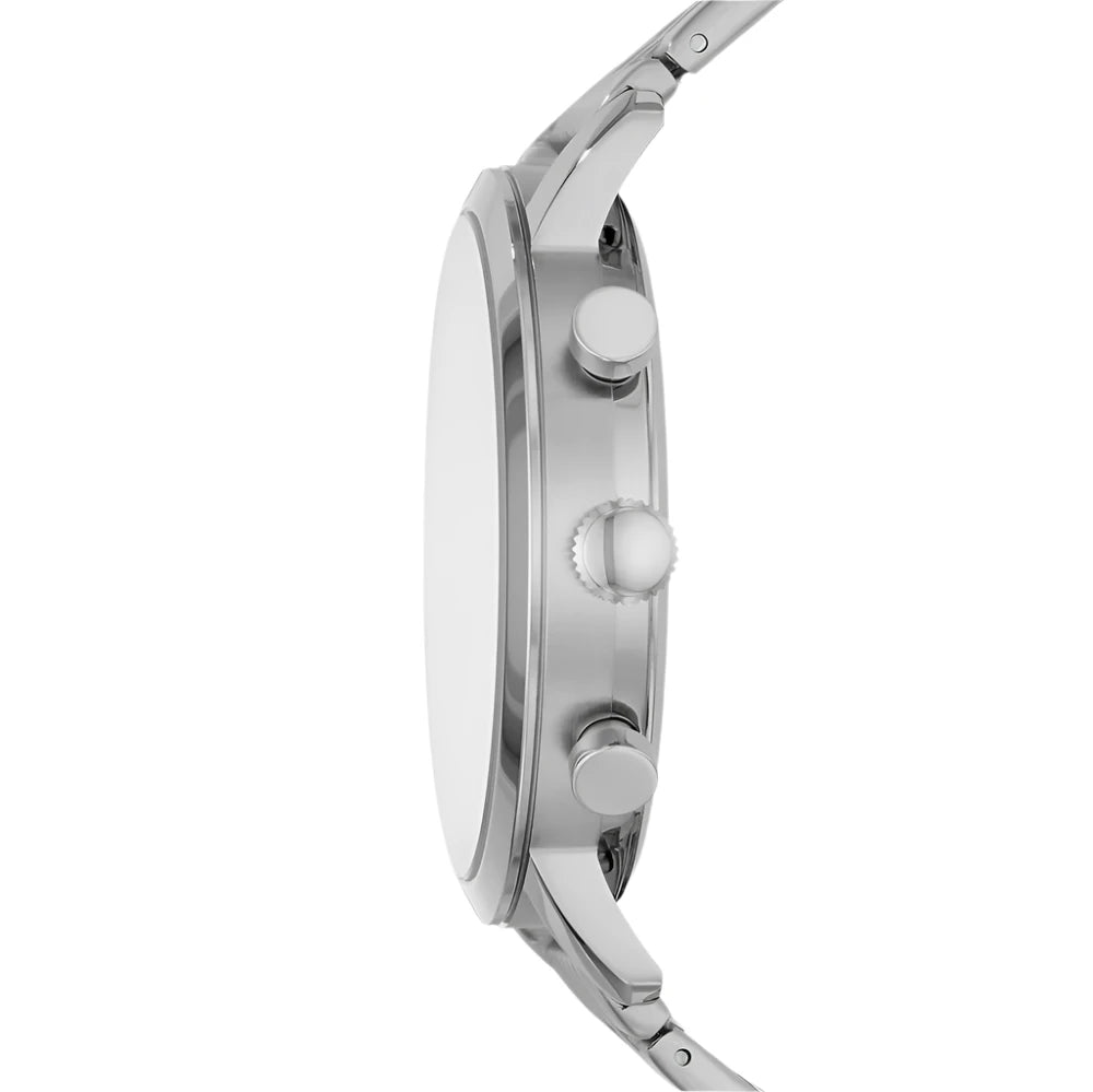 The Fossil Luther Gents Black Dial Stainless Steel Chronograph Watch is a stylish and functional timepiece for men. It has a 44x52mm case size with a black dial that is accented by stick indices. The watch also features a chronograph movement, allowing for precise timekeeping and the ability to measure elapsed time. The stainless steel bracelet adds a touch of elegance to the watch's overall design, making it suitable for both formal and casual occasions. The watch is also water-resistant up to 5 ATM, meaning it can withstand light splashes and rain. The black dial adds a sleek and modern touch to the watch, while the chronograph feature adds a practical element for those who lead an active lifestyle. This watch would make a great addition to any man's collection, offering both style and functionality. The Fossil Luther Gents Black Dial Stainless Steel Chronograph Watch is a timepiece that combines fashion and function in a sophisticated and durable package.
