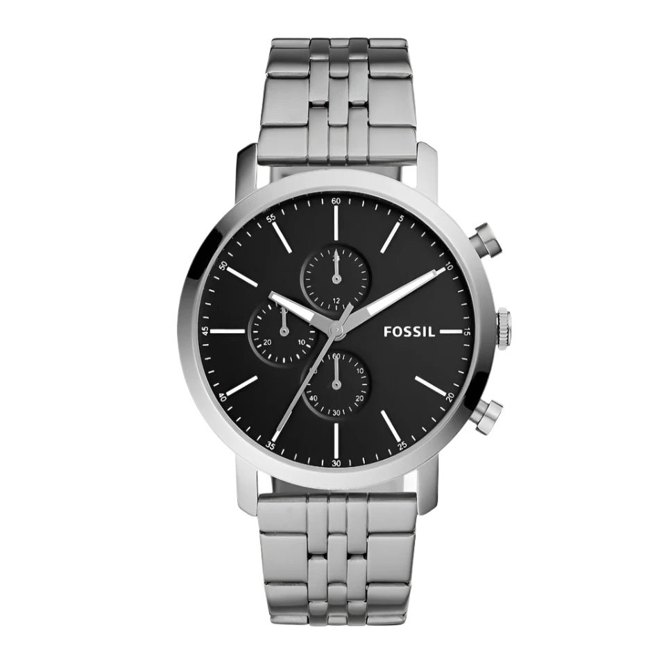 Fossil Luther Gents Black Dial Stainless Steel Chronograph Watch