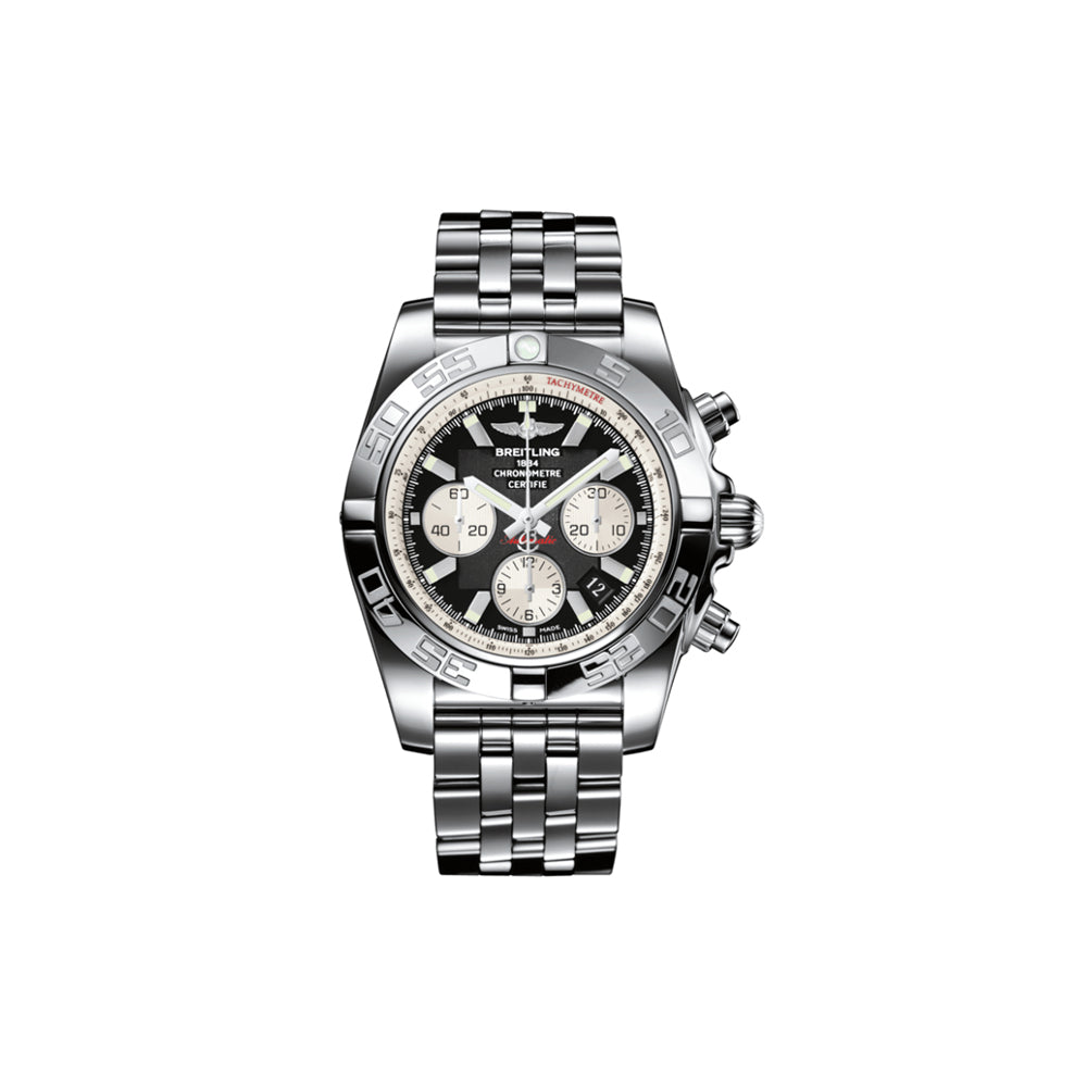 Chronomat 44 autom chronographsteel caseonyx black silver subdials markerspilot bracelet 22mm polished steel movable att