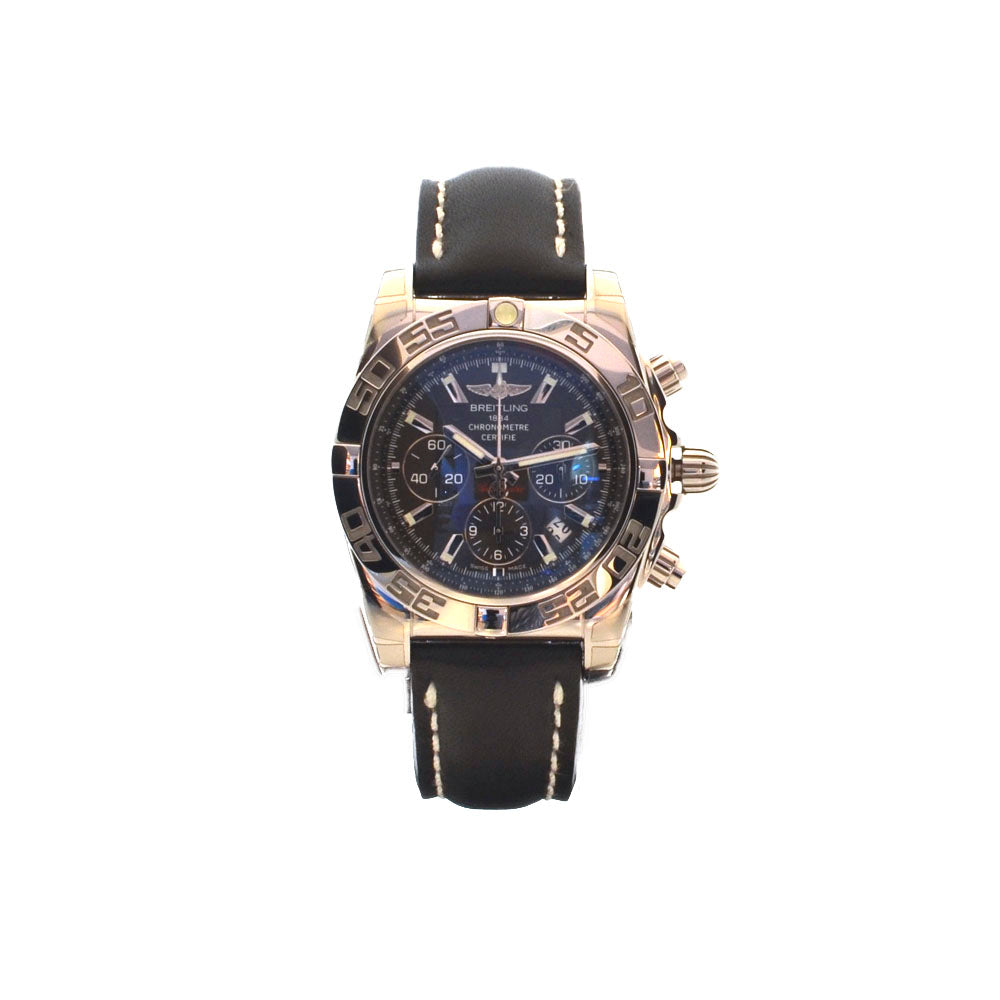 Chronomat B01 44mm autom chronograph steel case carbon black graphite subdials markers barenia leather strap