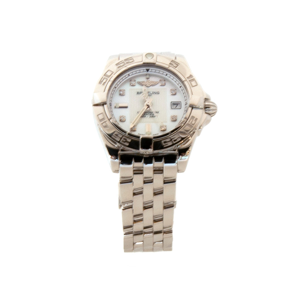 Galactic 32 quartz steel case mother of pearl diamond diamonds pilot bracelet 16mm polished steel