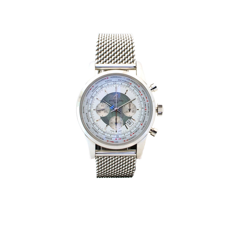Transocean chronograph unitime automatic chronograph steel case polar white silver subdials markers city indication disc in