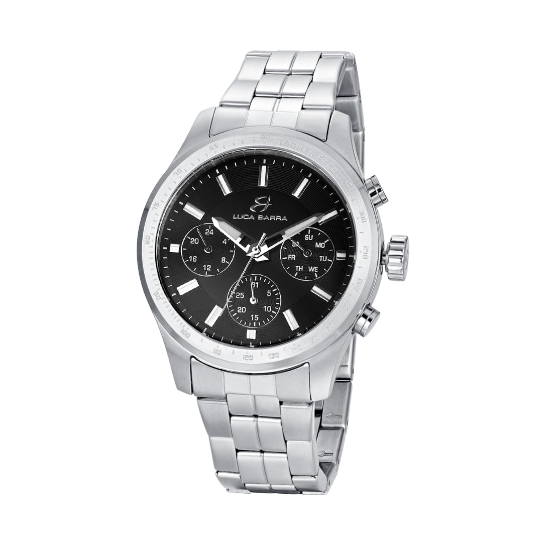 Luca Barra Gents Steel Watch with Black Dial and Silver Bezel