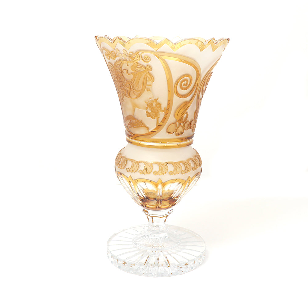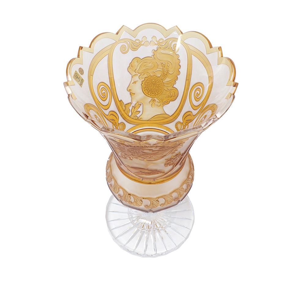 Certificated and handmade cut high-quality bohemian crystal vase. Crystal vase mucha is layered and colored high quality crystal, handmade at all stages of the manufacturing process. It contains pure raw materials and 24% lead. This gives the glass a high refractive index of light and makes the product very elegant and tasteful. Enrich your home with luxury and exquisite modern design.