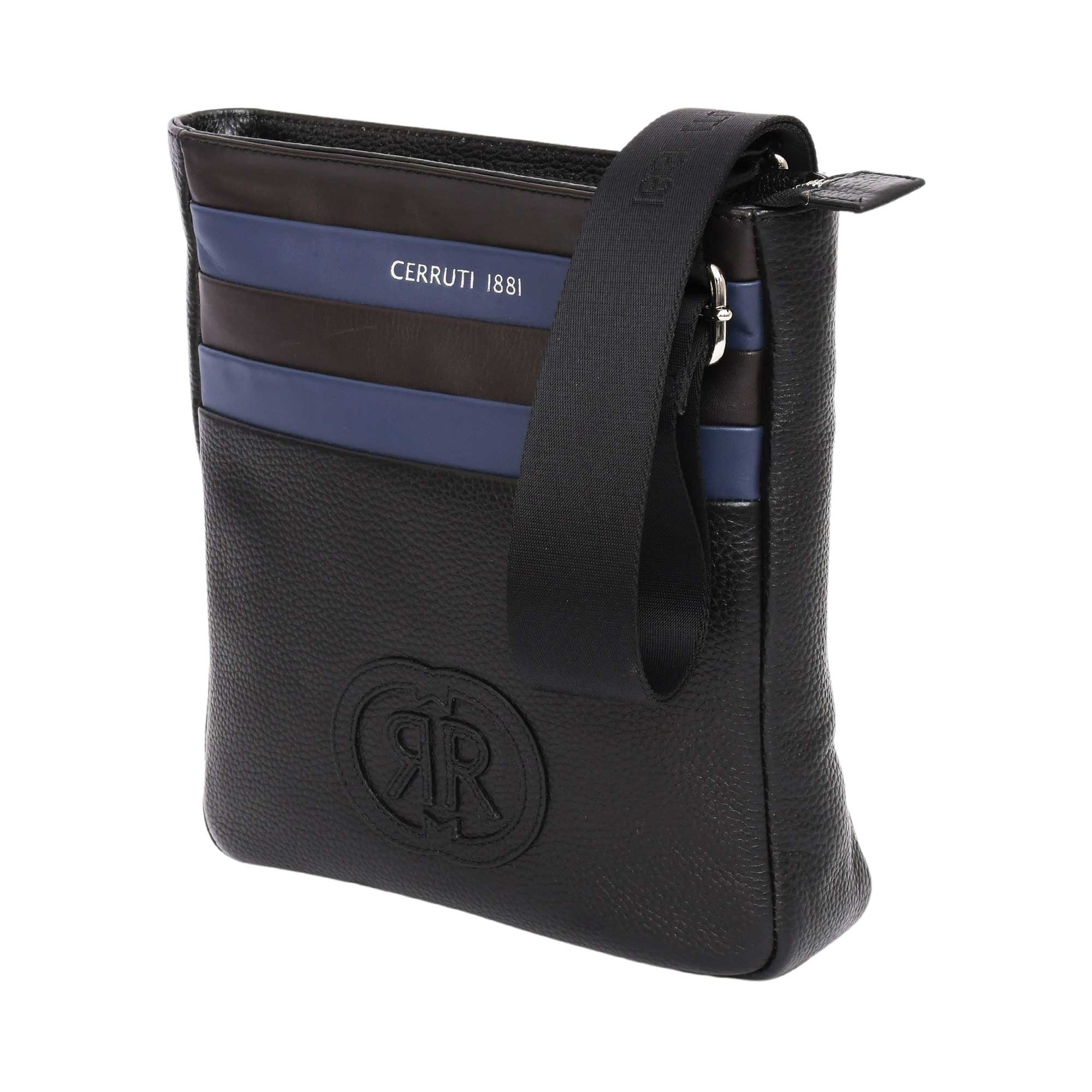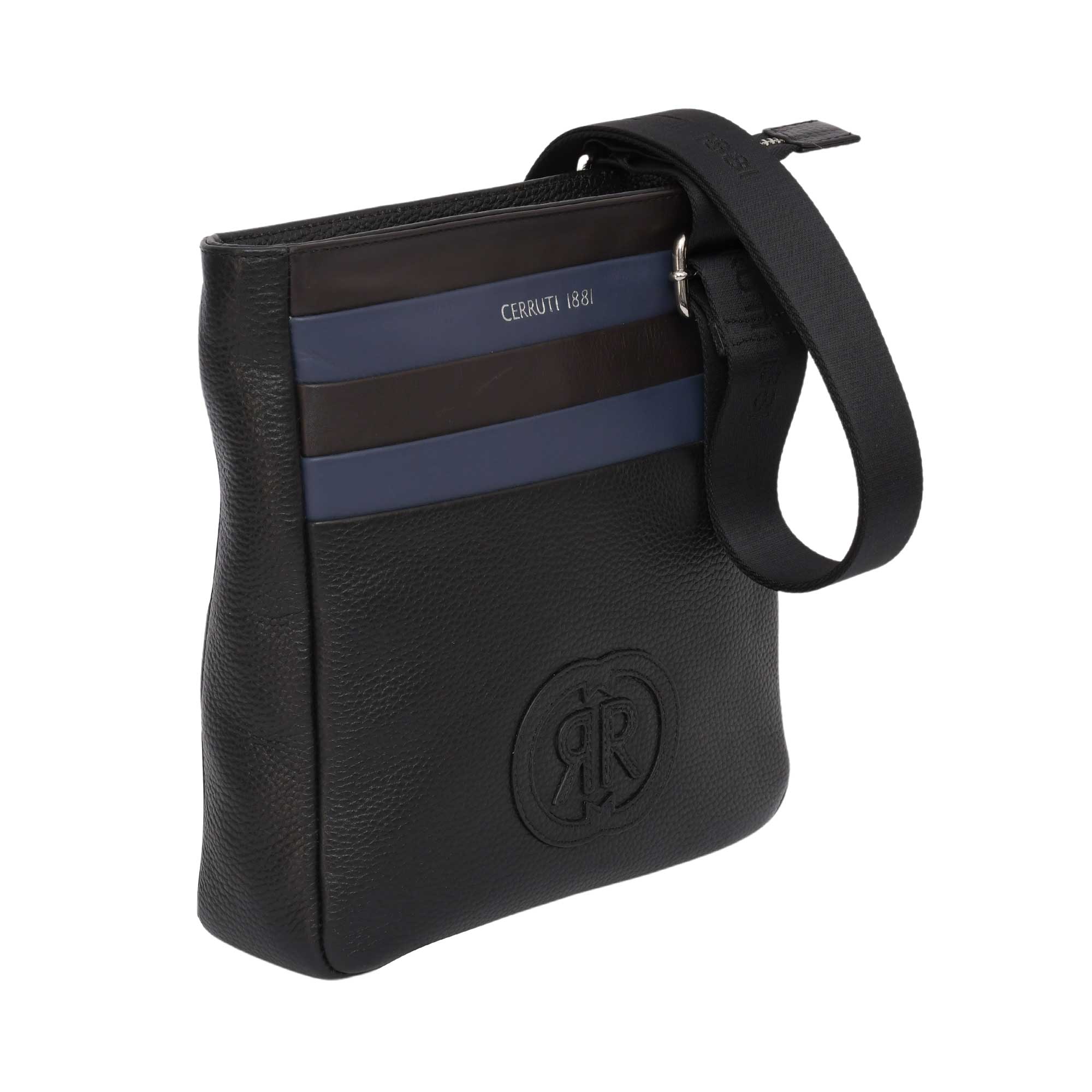 This CERRUTI 1881 men's cross body bag is the perfect blend of style and practicality. Crafted from top-quality leather, the dark black and blue bag features a zip closure to secure your belongings, while an adjustable strap allows for maximum flexibility when carrying. The bag is perfectly sized to fit all your necessities, so you will have everything you need no matter where you go. The muted color and minimalistic design of this bag make it a chic and modern addition to any ensemble. Perfect for business or casual occasions, this sleek and stylish bag from CERRUTI 1881 is sure to become your go-to accessory. SPECIFICATIONS